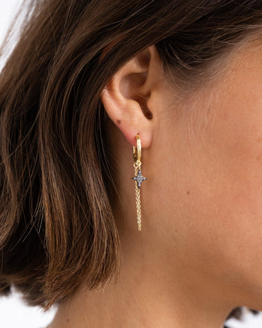 Prachtige oorbel met pendant en chain.