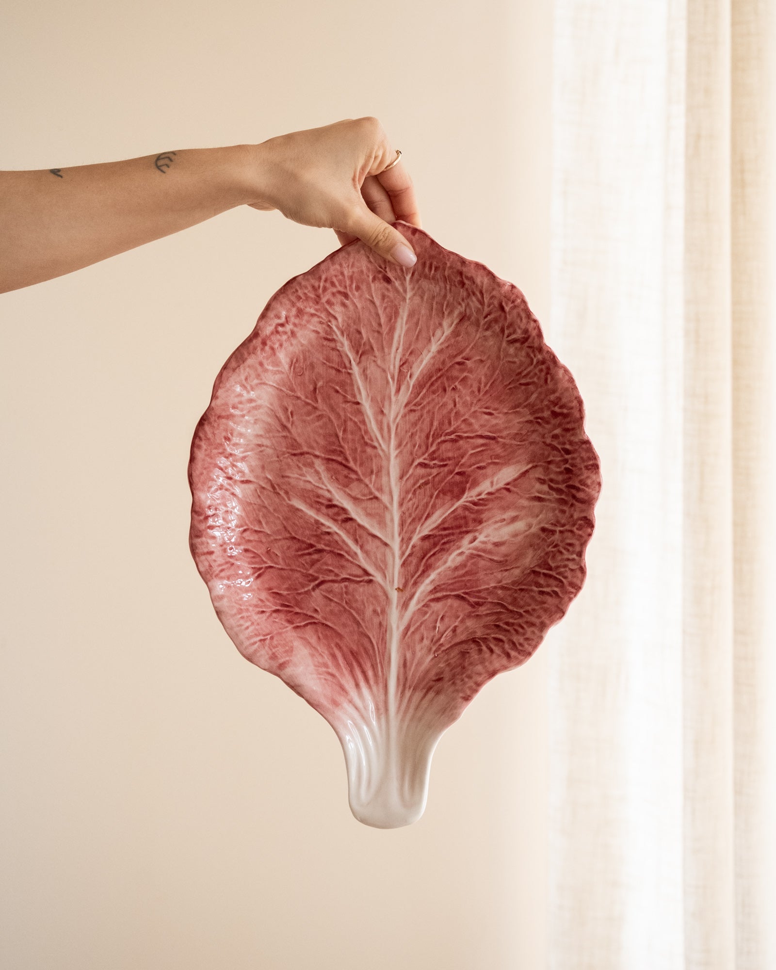 Breng kleur en karakter naar je tafel met de Hand-Painted Serving Plate Cabbage Pink. Dit handbeschilderde serveerbord uit Italië, geïnspireerd op een blad van kool, heeft een speelse, organische vorm en is perfect voor het serveren van hapjes, fruit of een gezellige borrel. Een echte eyecatcher die jouw tafelsetting direct tot leven brengt.