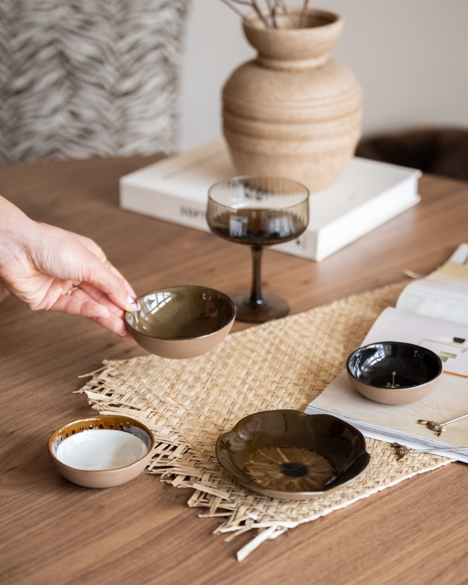 Perfect voor olijven, dips, snacks of kleine gerechtjes, maar ook prachtig als decoratief setje op tafel of een open plank. Een servies dat uitnodigt tot vertragen en genieten van de kleine momenten.