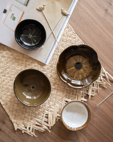 SET OF 4 – Hand-Painted Bowl Cycle Brown brengt rust en verfijning naar tafel. Deze handbeschilderde kommen zijn geïnspireerd op de natuurlijke cyclus van de pioenroos: van stilte onder de aarde tot volle bloei. De organische vormen, warme bruintinten en subtiele glazuurdetails maken elk schaaltje uniek.