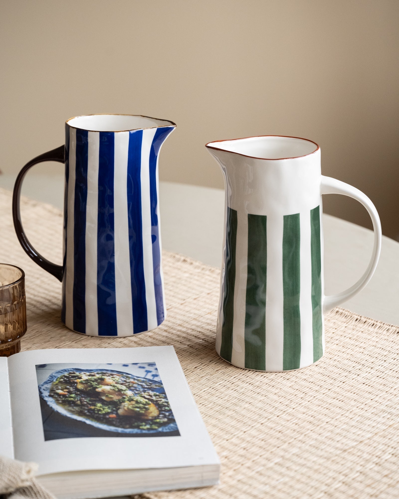 Voeg een vleugje speelse elegantie toe aan je tafel met de Jug Anafi Blue Stripe. Het levendige indigo-strepenpatroon en de tijdloze vorm maken deze kan perfect voor water, sap of een huisgemaakte limonade. Een harmonieuze mix van traditioneel en modern design, waarmee elke maaltijd een visueel feest wordt!