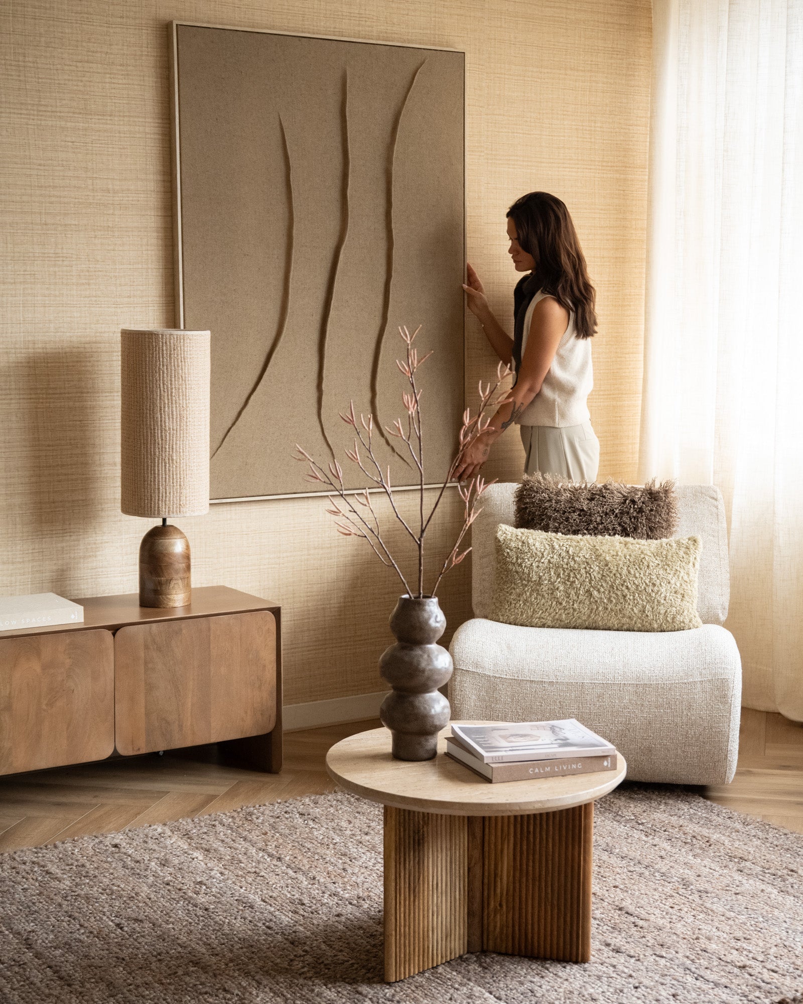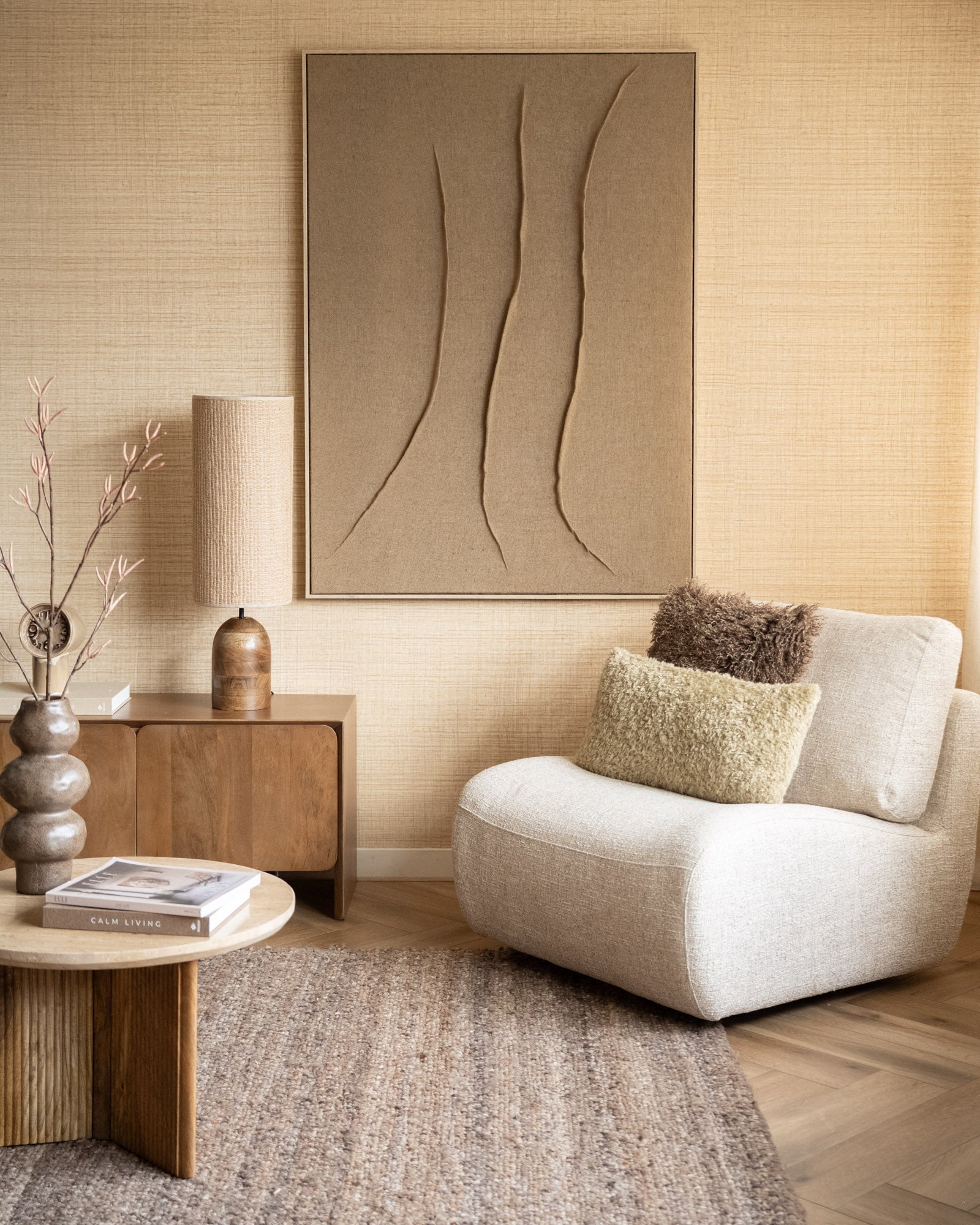 X-Large Wall Art Ondula brengt rust en beweging samen in één statement piece. Het natuurlijke jute en het subtiele reliëf geven je muur een organische, kunstzinnige uitstraling. Met zijn royale formaat is Ondula perfect om elke ruimte sfeer, textuur en warmte te geven.