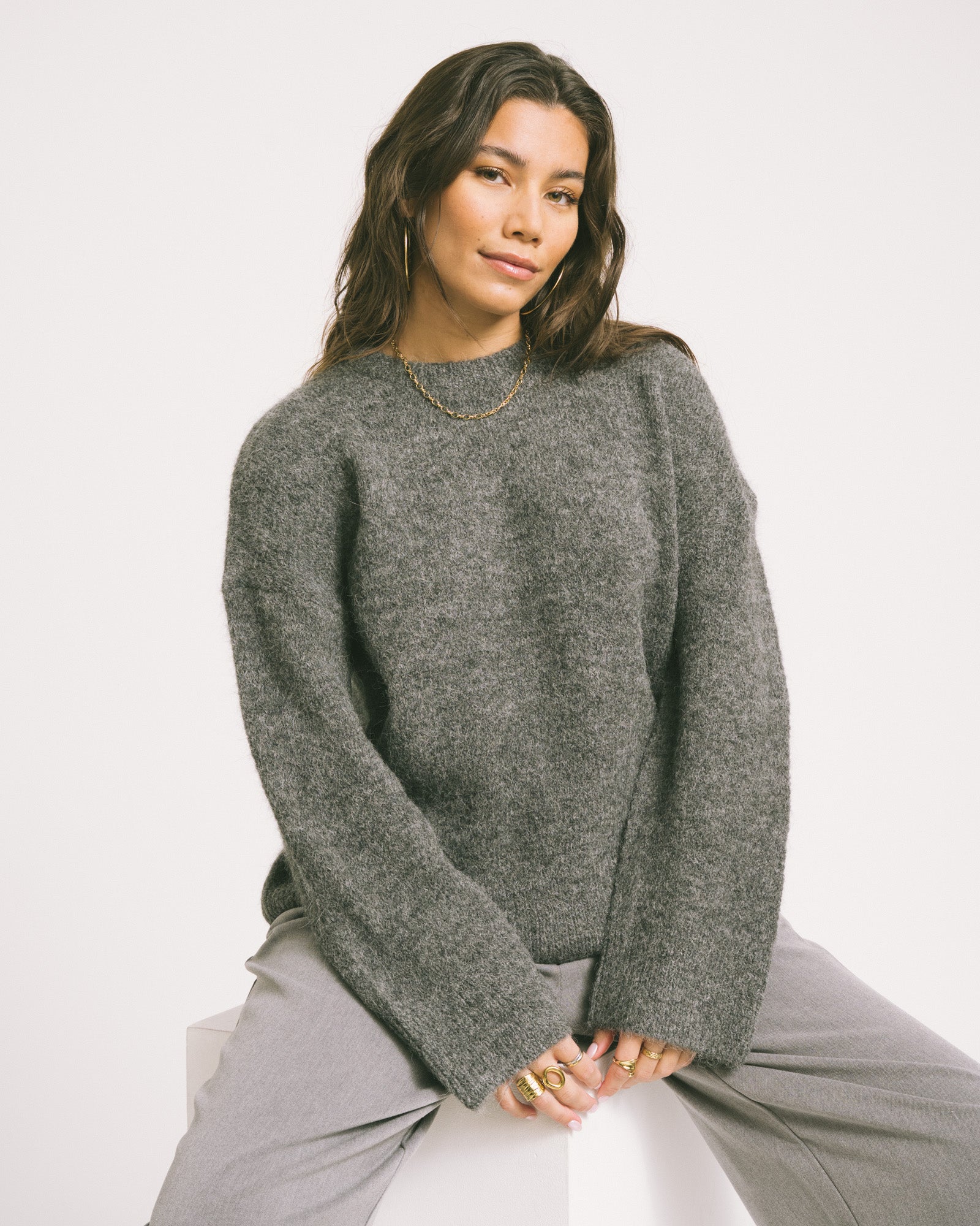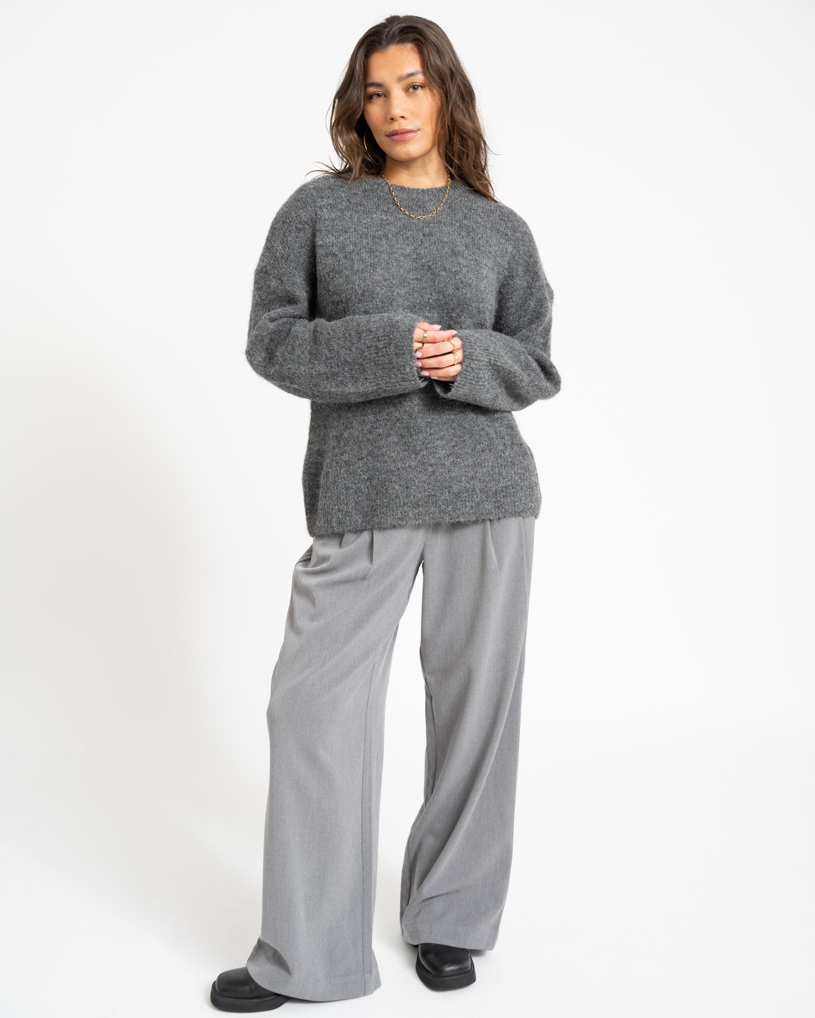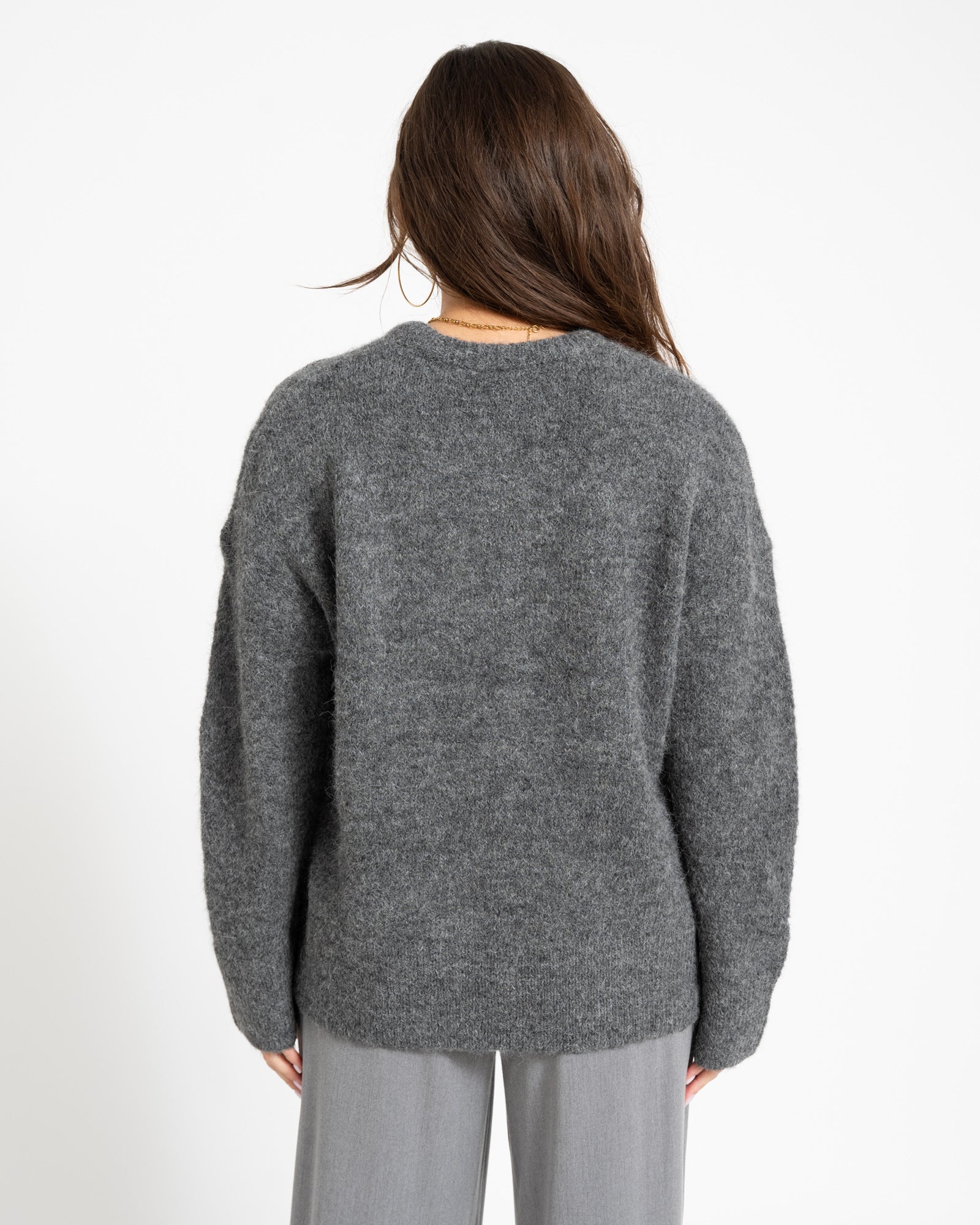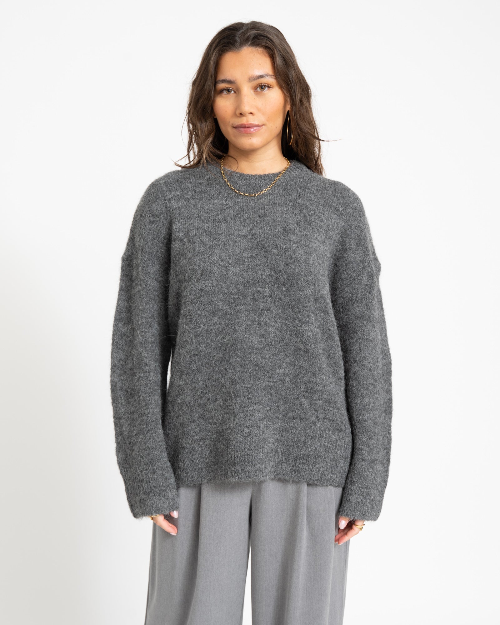 Rouge Edit Haven Oversized O-Neck Knit Dark Grey Melange 59% Alpaca Wol