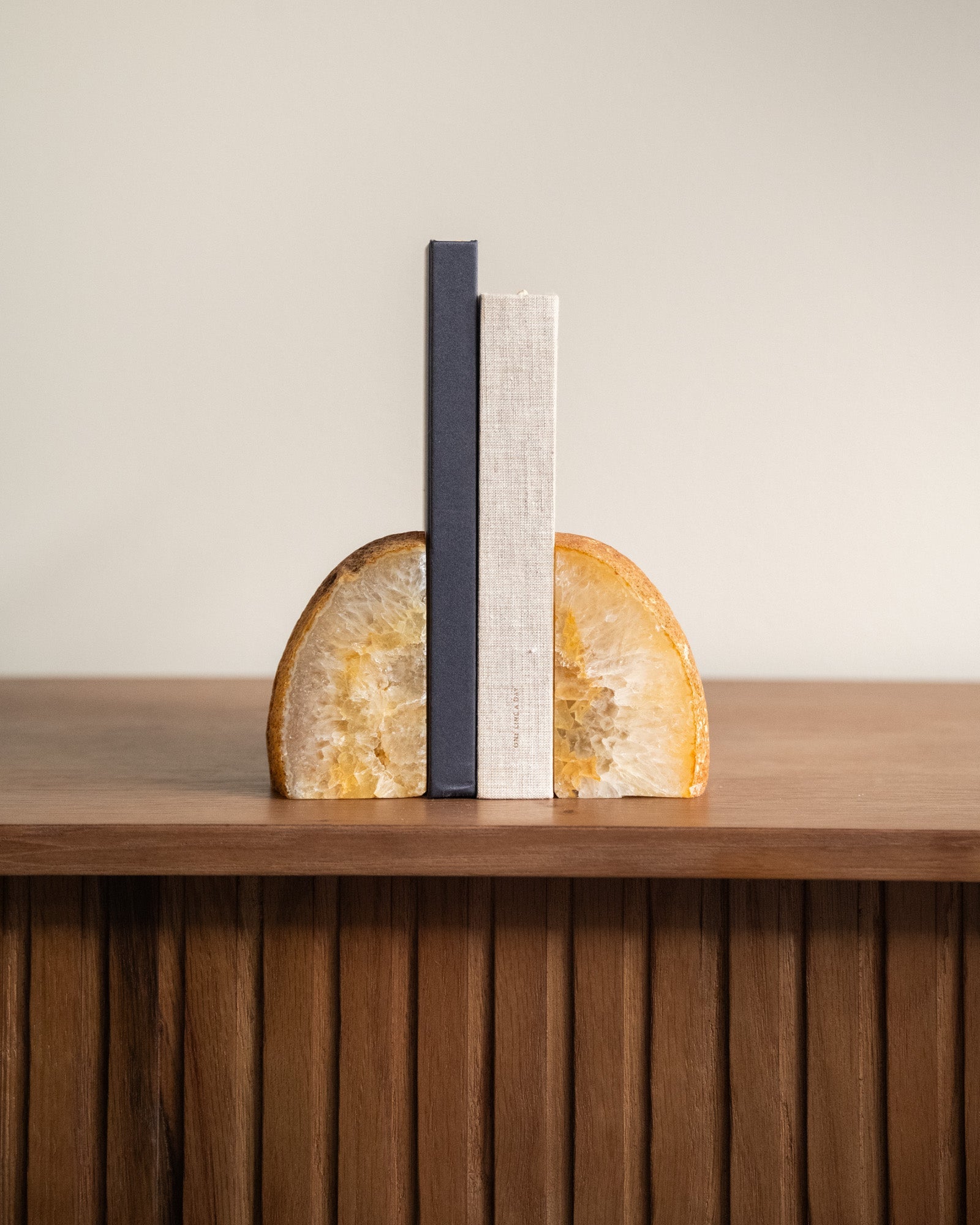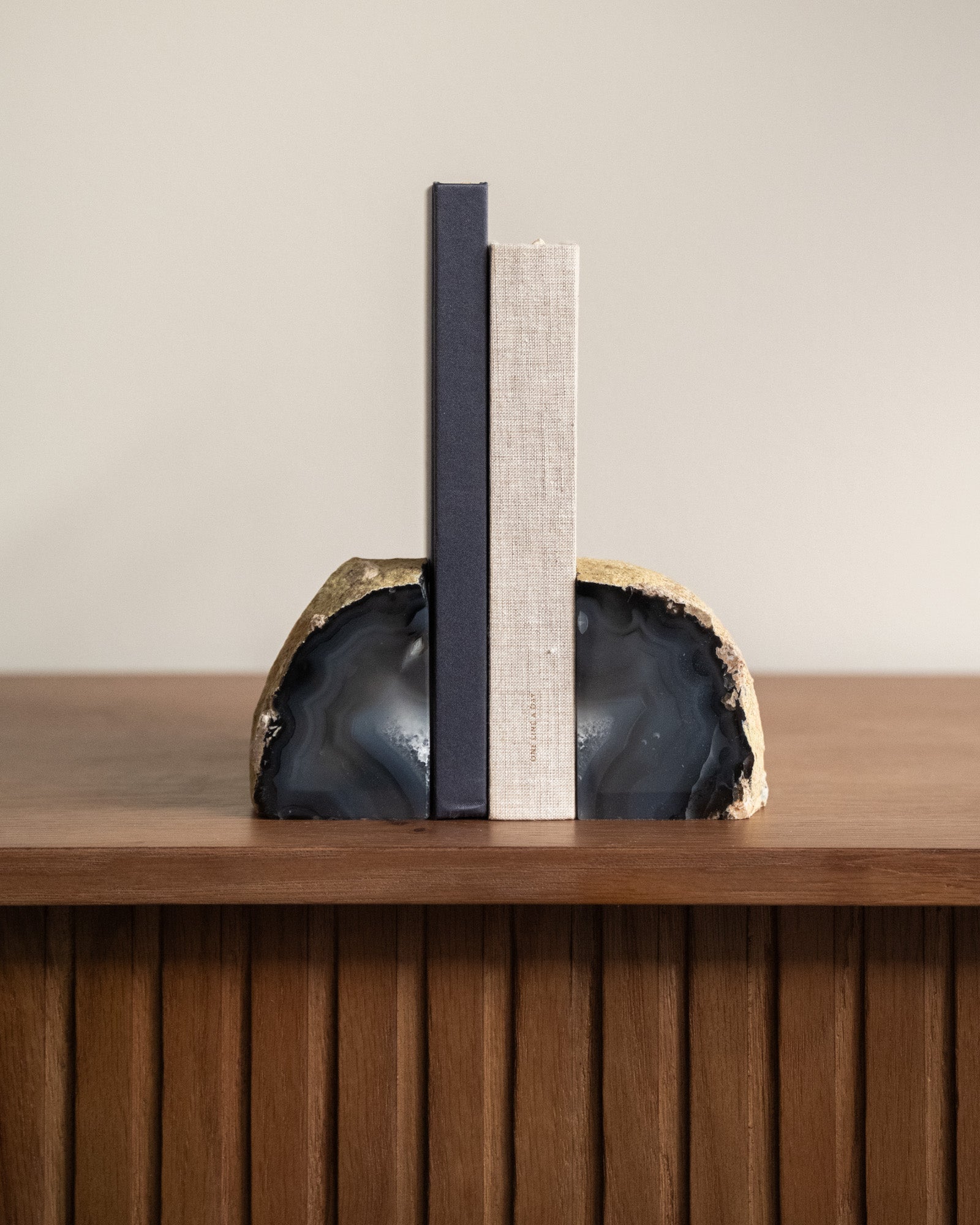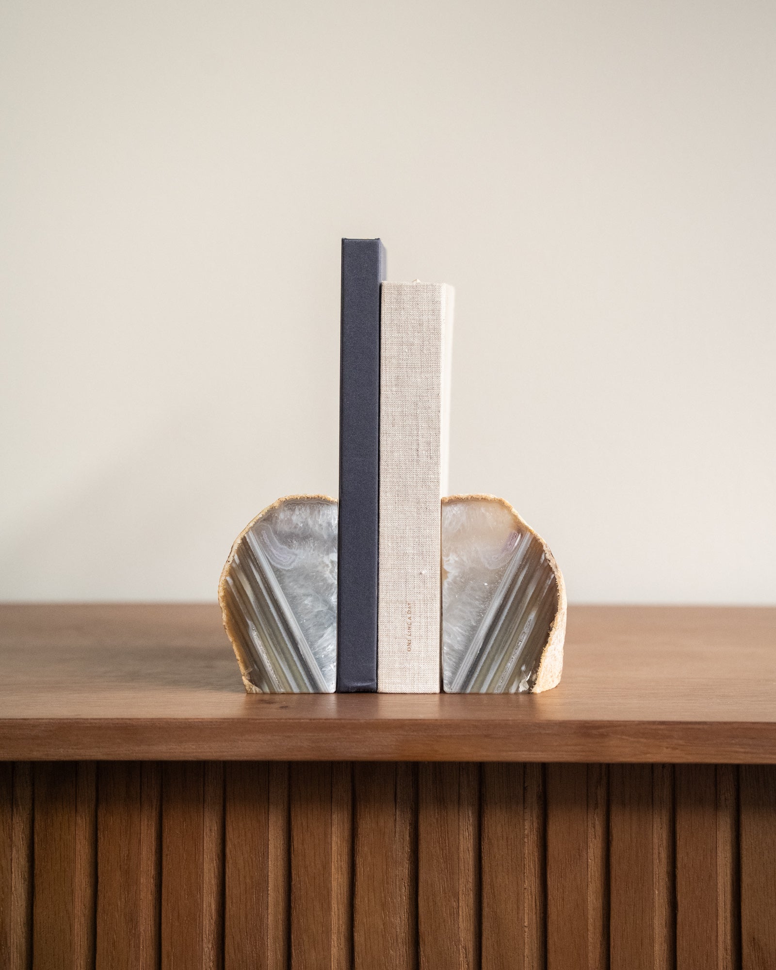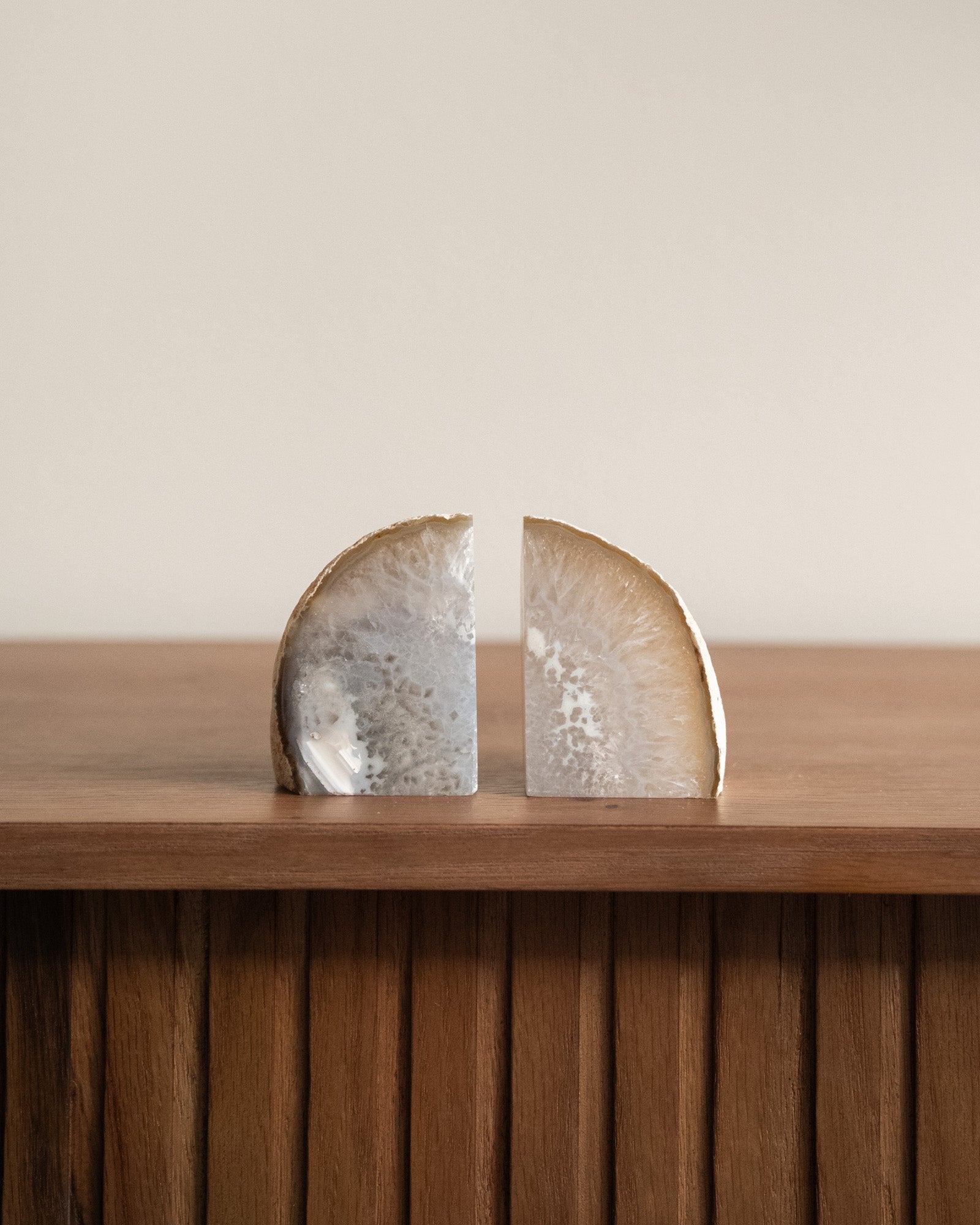 Deze unieke boekensteunen zijn gemaakt van natuurlijke agaatsteen. Agaat heeft een beschermende en aardende werking. Omdat het natuursteen is, is elk item uniek.