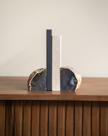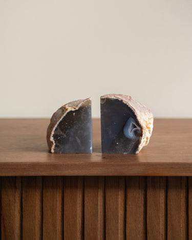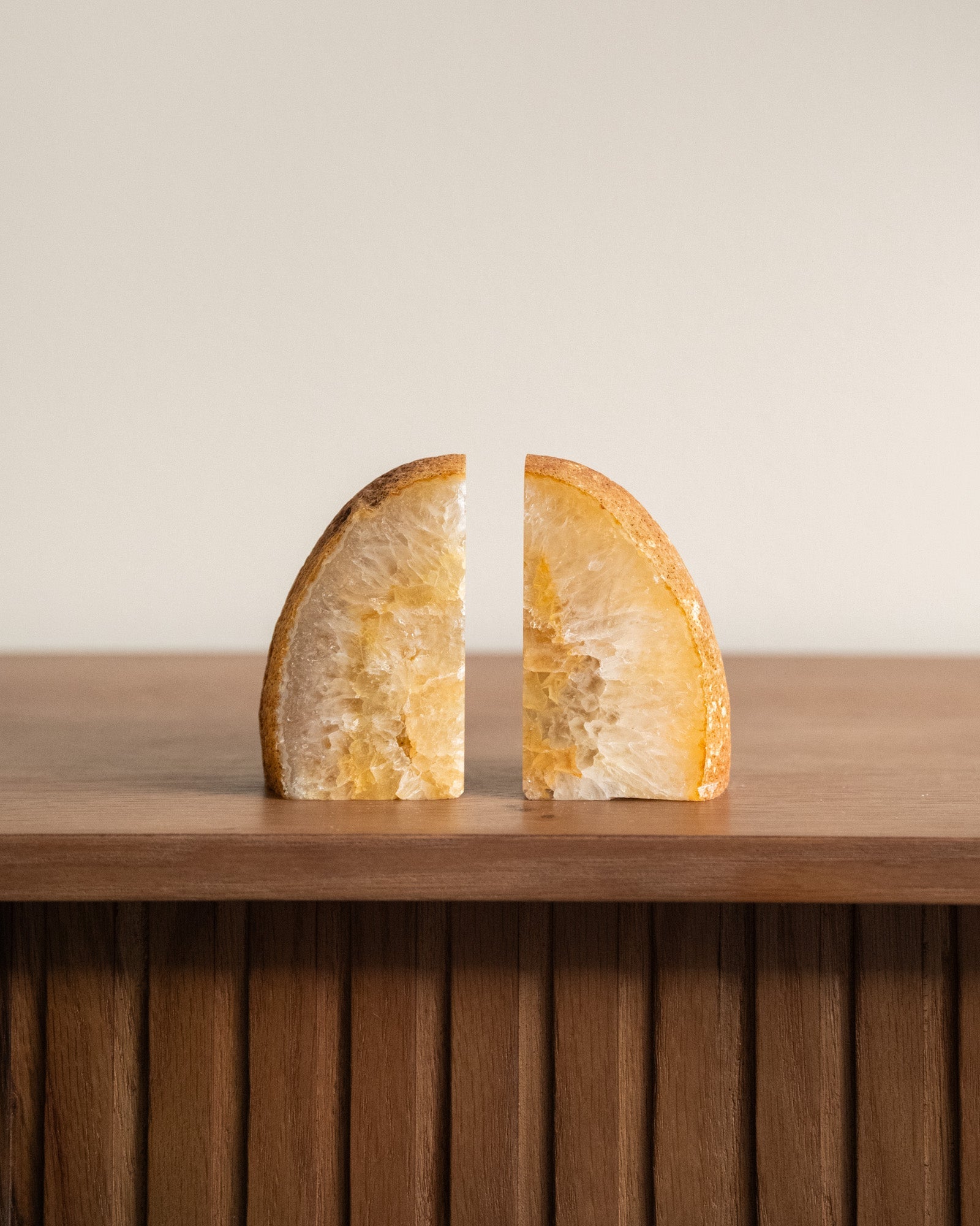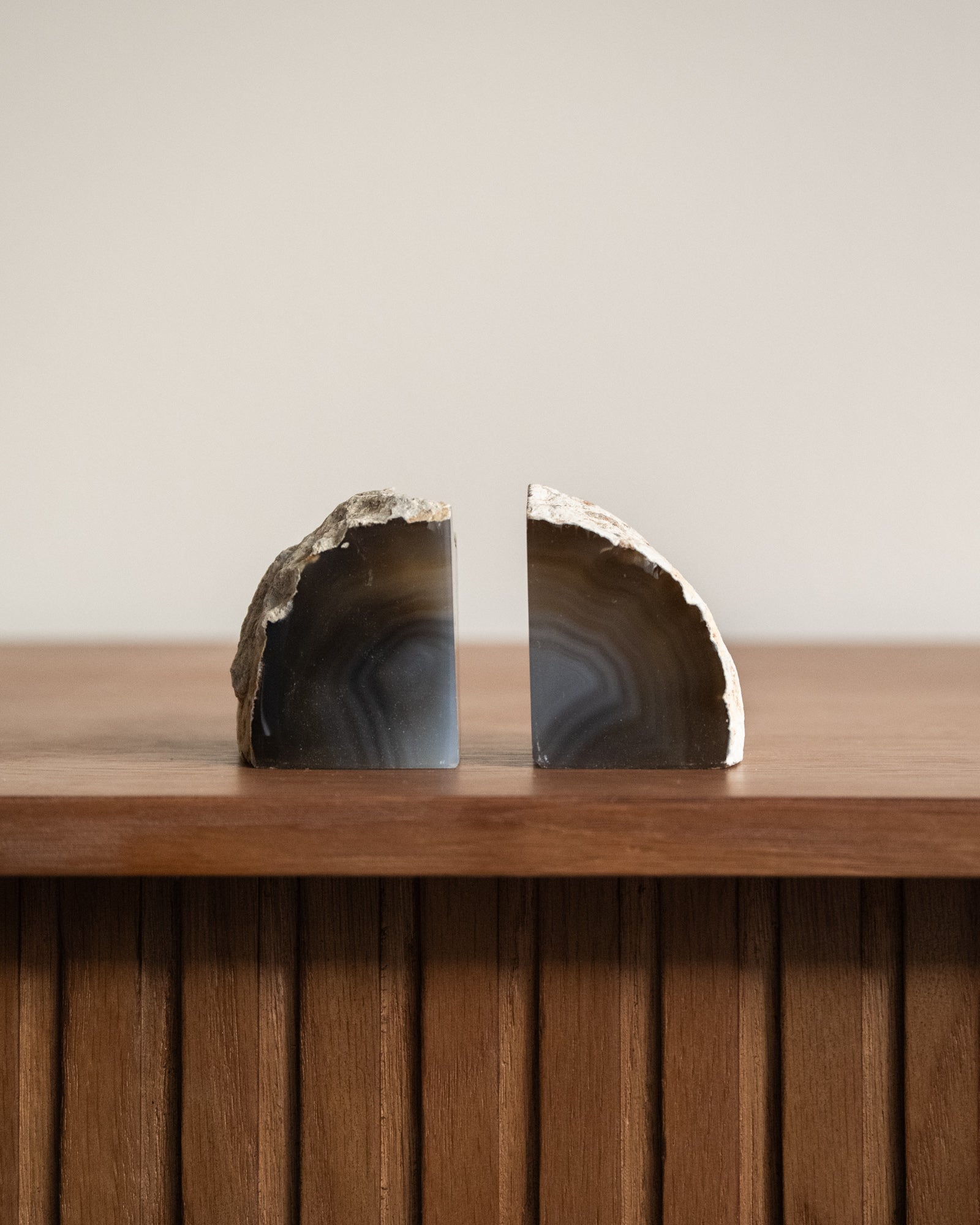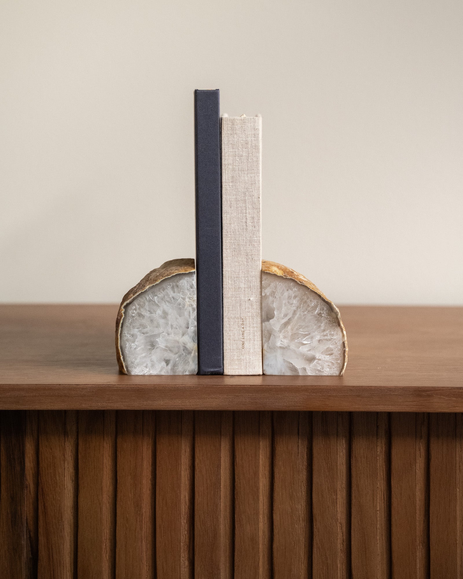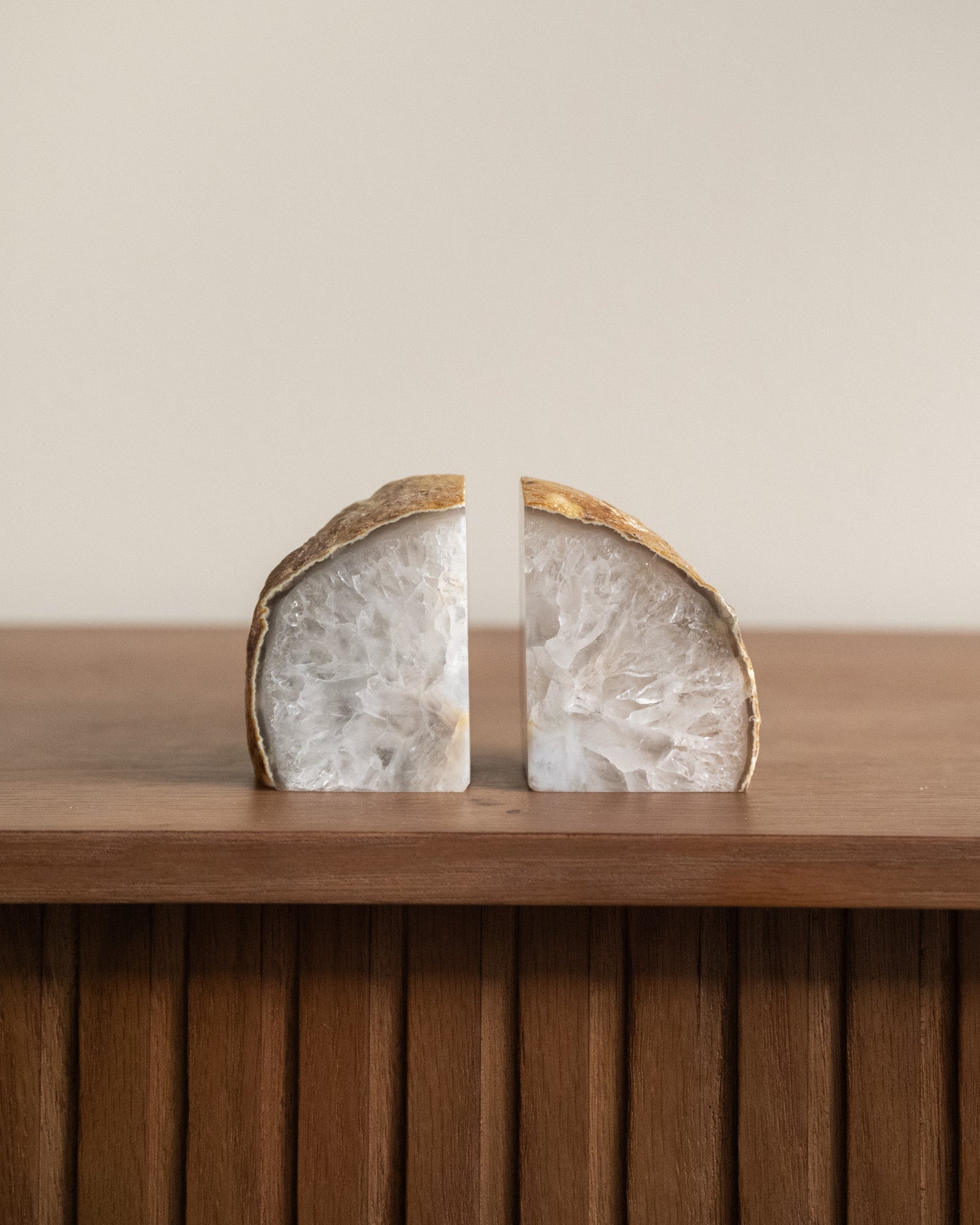 Deze unieke boekensteunen zijn gemaakt van natuurlijke agaatsteen. Agaat heeft een beschermende en aardende werking. Omdat het natuursteen is, is elk item uniek.