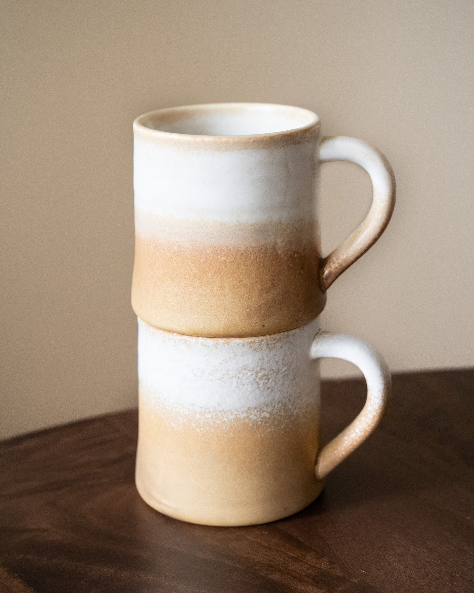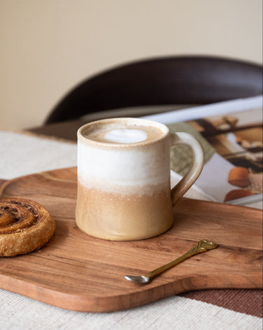 Mug Reactive Sand brengt warmte en ambacht in je dagelijkse koffiemoment dankzij het prachtige reactieve glazuur in zandtinten. Elke mok is uniek door de natuurlijke kleurverloop-finish en ligt heerlijk in de hand. Perfect voor koffie, thee of warme chocolademelk. Een sfeervolle must-have in elke keuken!