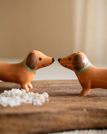 Breng speelsheid naar je eettafel met deze teckel zout- en peperstrooiers! Met hun schattige ontwerp en vrolijke uitstraling zorgen ze voor een glimlach bij elke maaltijd. Perfect als cadeautje of om je eigen tafelsetting een leuke twist te geven!
