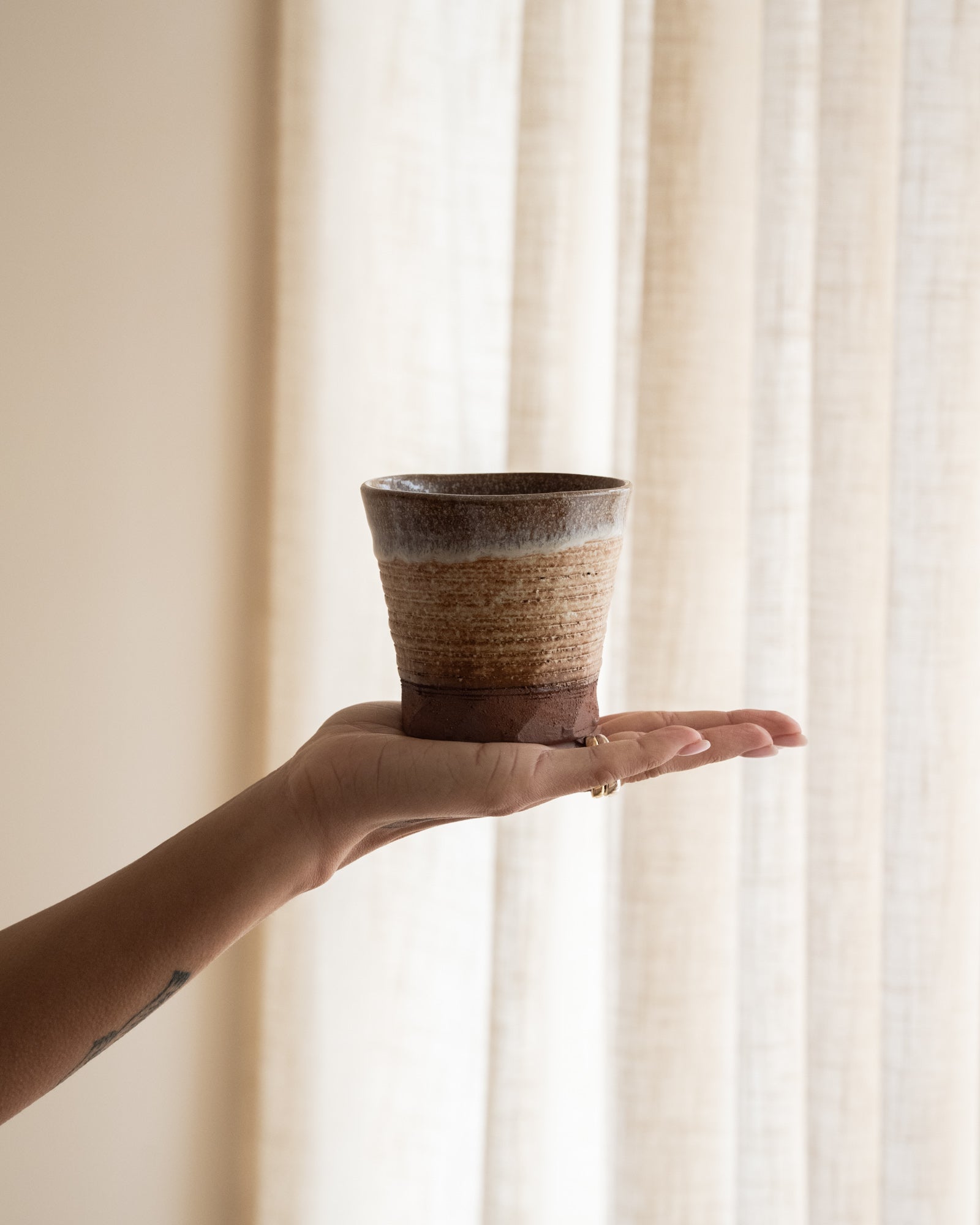 Geniet van je koffie of thee in stijl met deze handgemaakte Japanse craft cup. Het unieke keramische ontwerp met rustieke textuur en subtiele glazuurlaag straalt pure ambacht en authenticiteit uit. Perfect voor liefhebbers van minimalistische esthetiek en slow living!