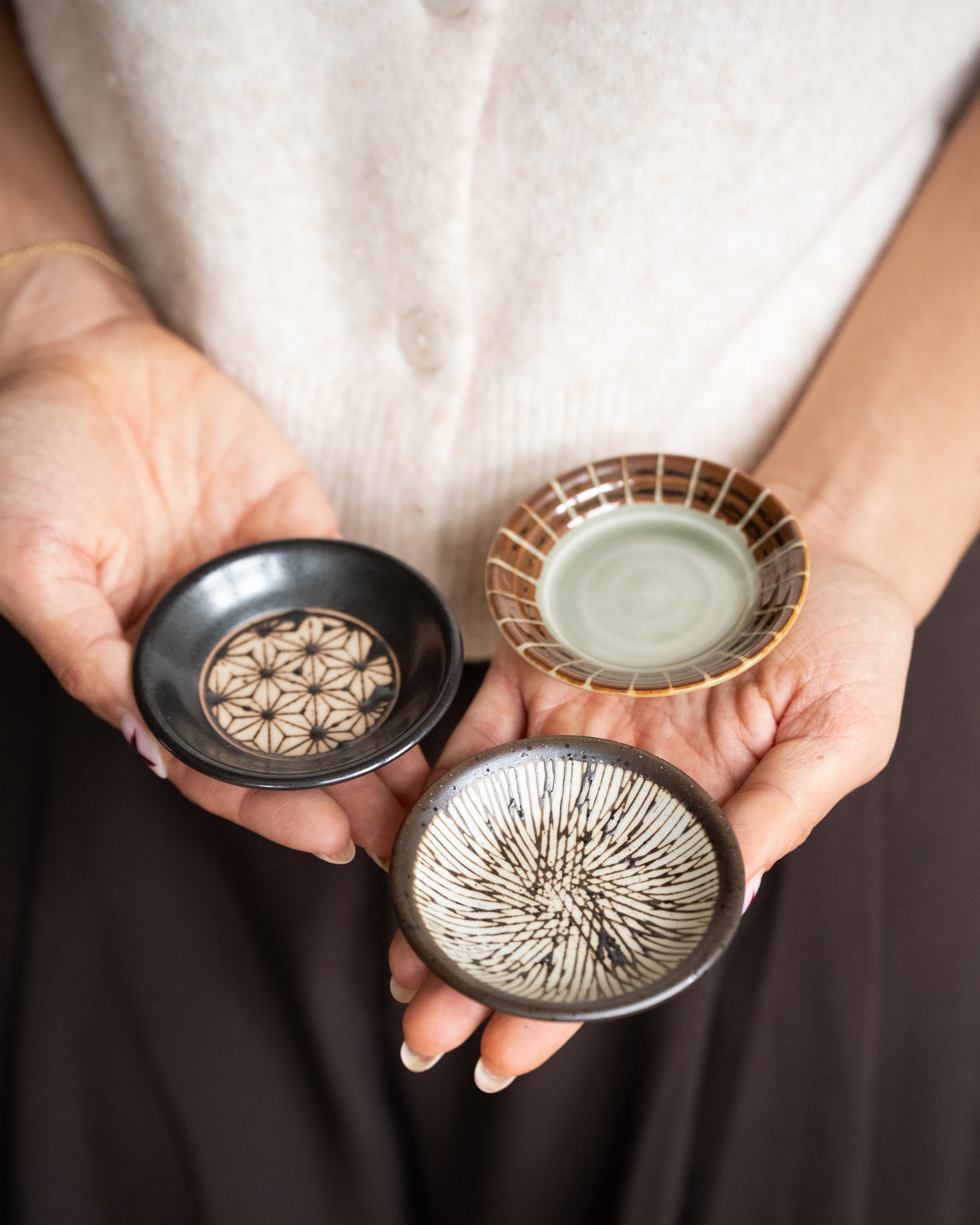 Handmade Japanese Sauce Dish Tokusa is een authentiek porseleinen schaaltje, handgemaakt in Japan. Het fijne Tokusa-patroon met subtiele lijnen geeft een minimalistische en tijdloze uitstraling. Perfect voor sojasaus, dips, zout of kleine bites.