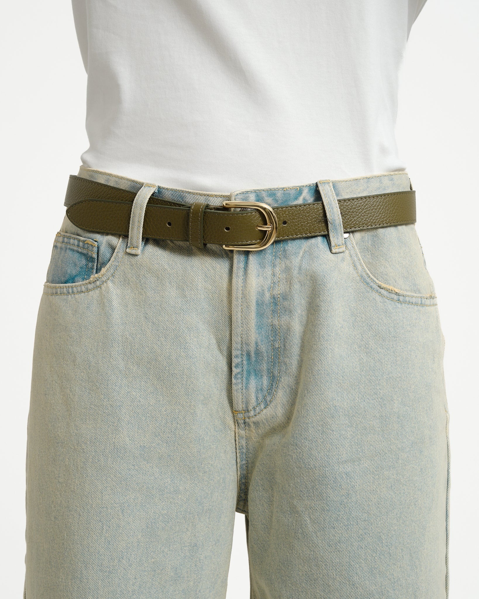 Een tijdloze essential. De Suus Classic Belt in groen is dé riem die bij alles past.