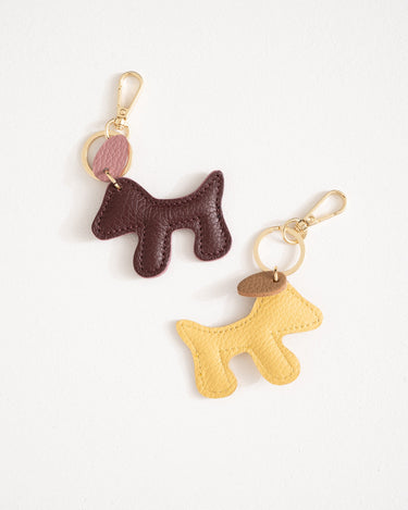 De 'Bumpy Dog' bag charm komt een handige goudkleurige clip is de sleutelhanger eenvoudig te bevestigen aan je sleutels of tas.