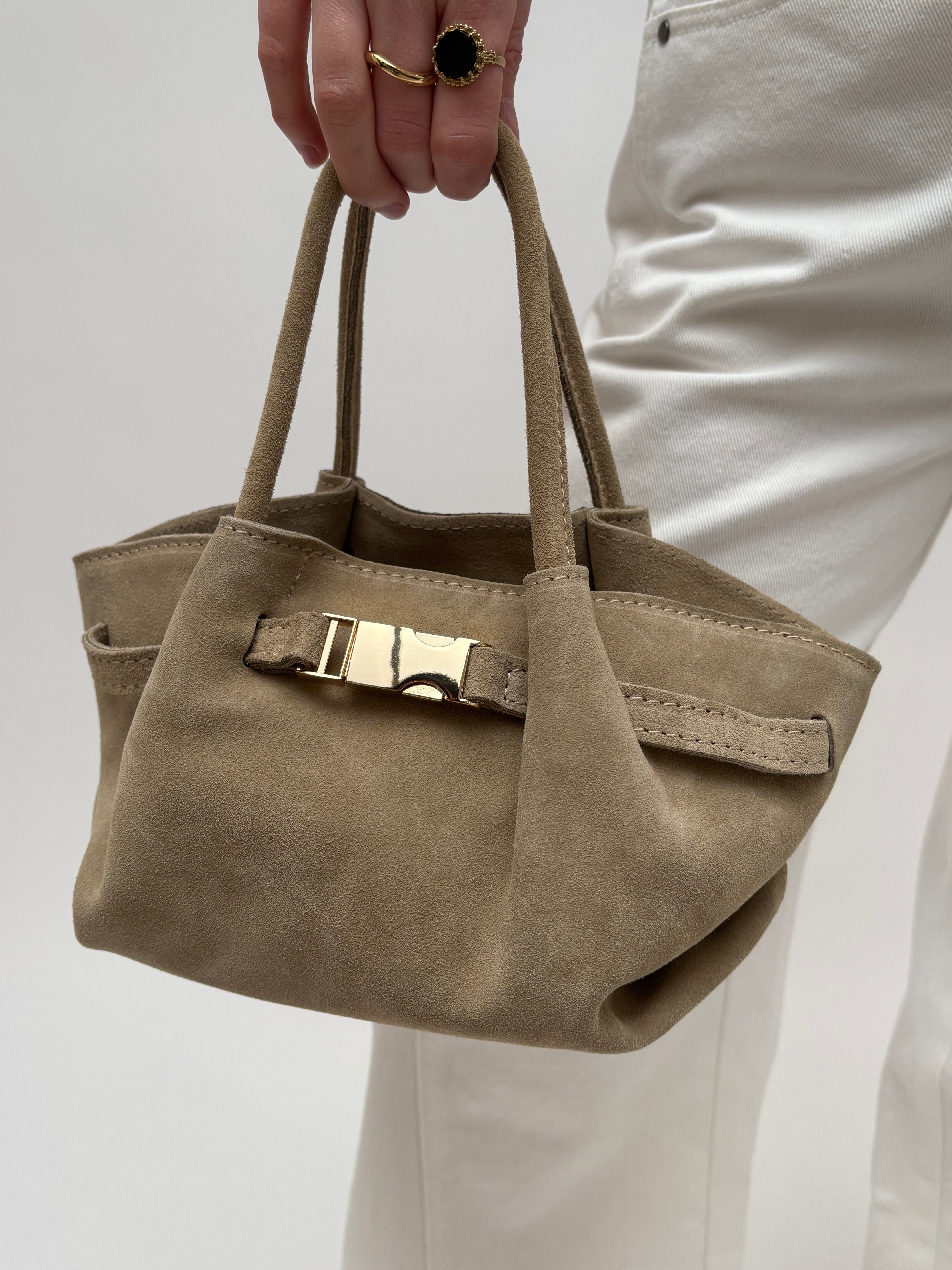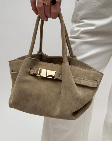 Leonie is een leren handtas vervaardigd uit suede leer. De handtas is ook te dragen als een crossbody tas en heeft een afneembaar en verstelbaar hengsel.