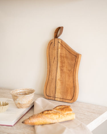Breng natuurlijke charme in huis met de Serving Tray Organica Wood. Deze speels gevormde serveerplank, gemaakt van hout, combineert functionaliteit met een organisch design. Perfect om een borrelplankje stijlvol te presenteren of om je keuken te sieren als decoratief object. De leren lus geeft het dienblad een subtiele twist én maakt het handig op te hangen.