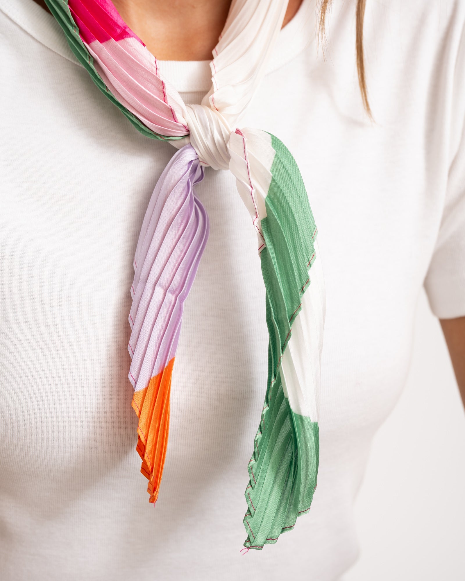 Het perfecte sjaaltje voor zonnige dagen. Draag ‘m als hoofddoek, om je nek, aan je tas of als speels accent aan je broek. Eindeloos te stylen en altijd leuk, vooral tijdens het festivalseizoen.