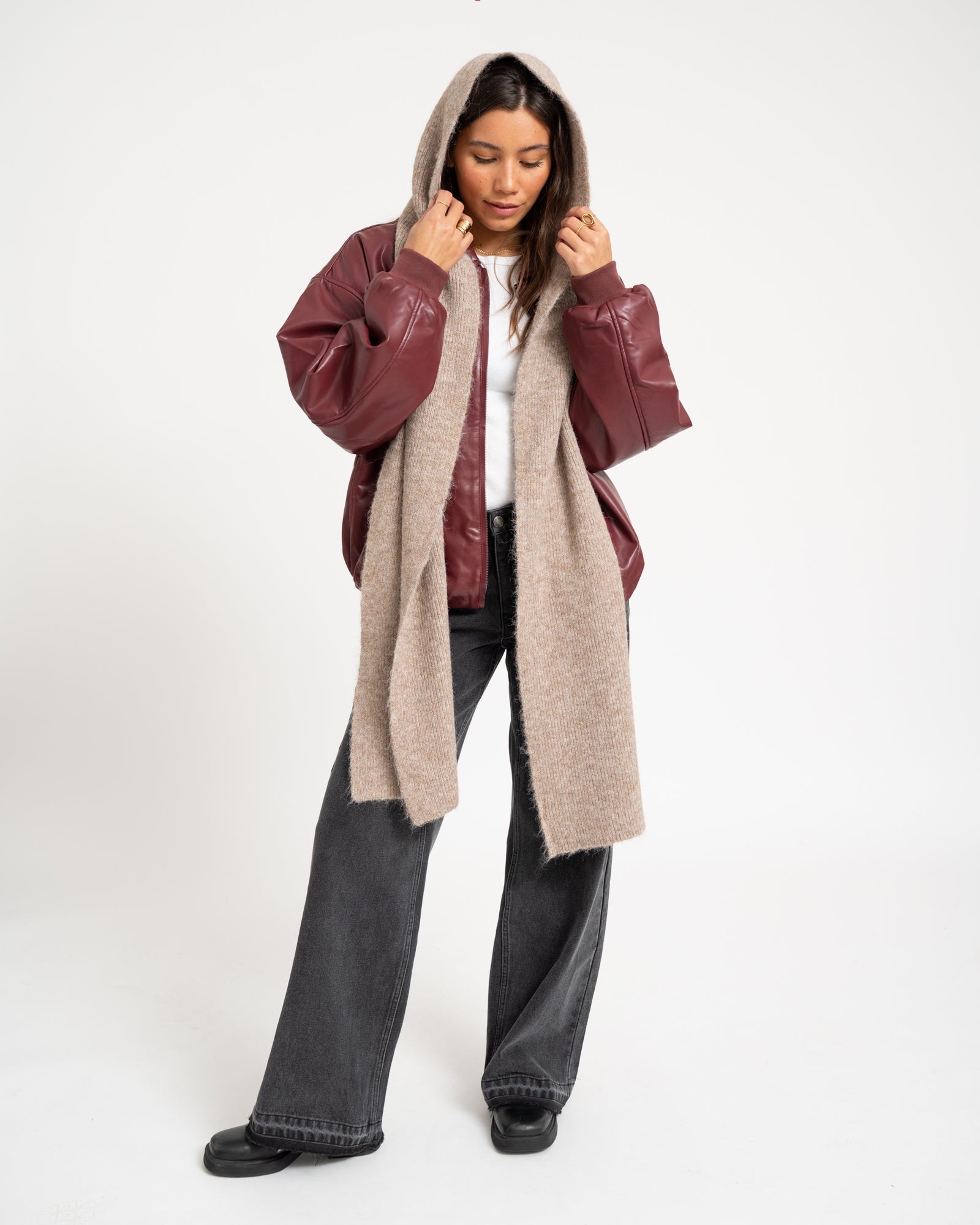Voor de girls die comfy willen zijn, maar nooit saai. Een sjaal + capuchon in één.