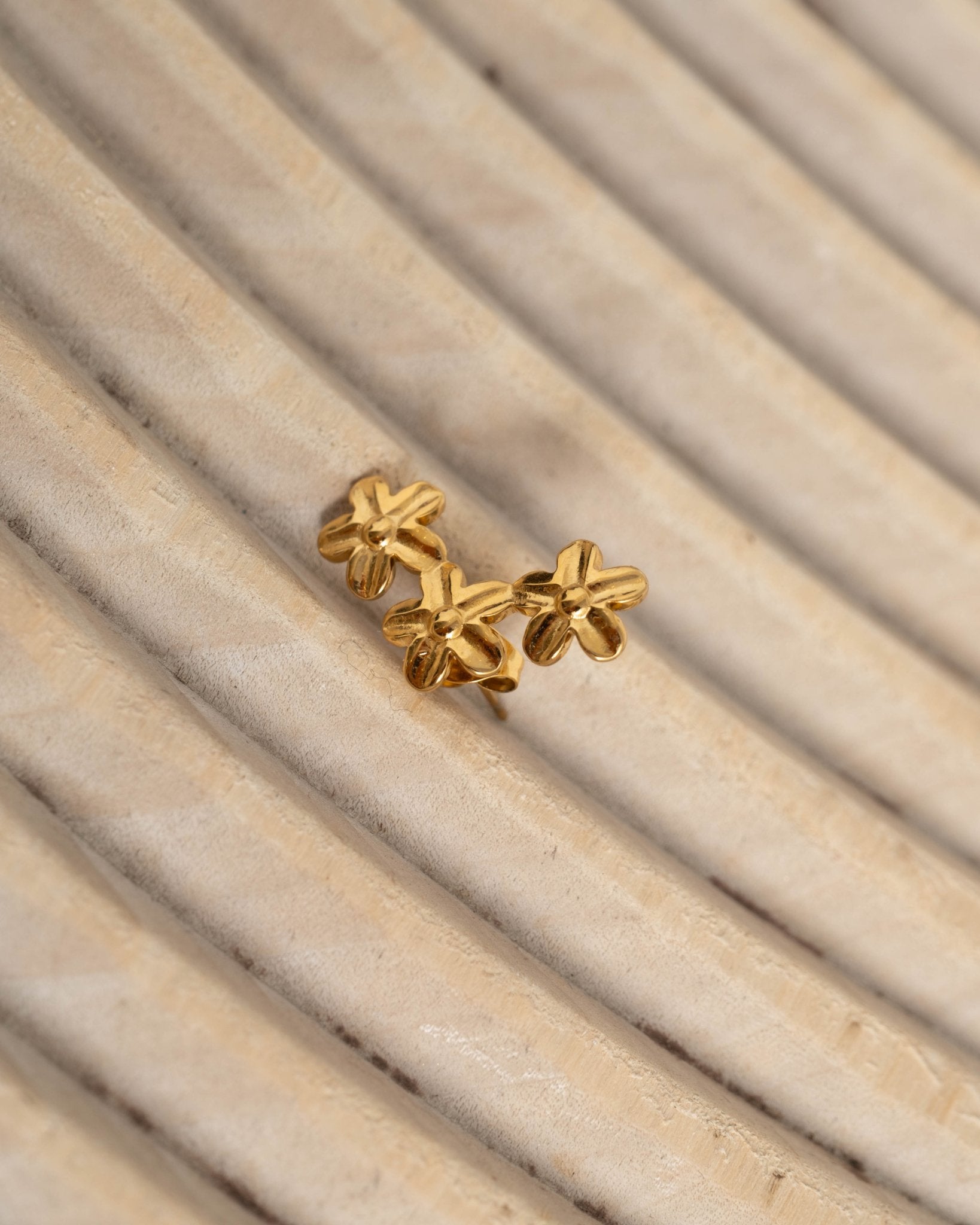 Goudkleurige flower studs die subtiel shinen bij elke look. Lief, tijdloos en perfect om je earparty een zachte sparkle te geven. ✨