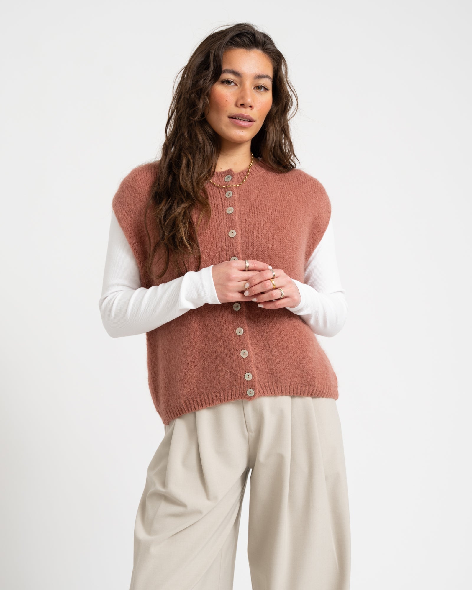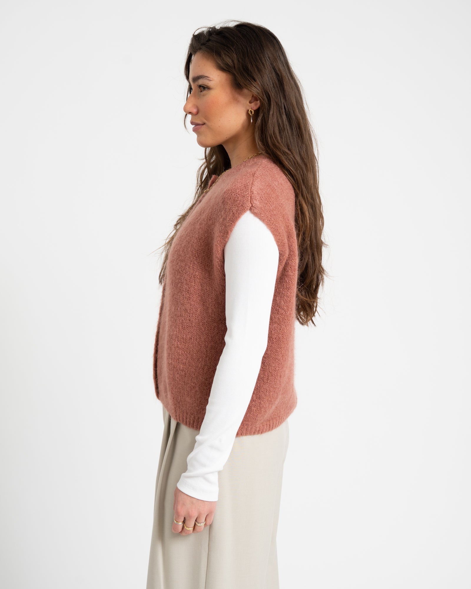 De Essie Knit is jouw nieuwe favoriete knit voor ieder seizoen. Deze mouwloze top in de kleur soft pink is niet alleen mega comfy, maar ook een echte eyecatcher.