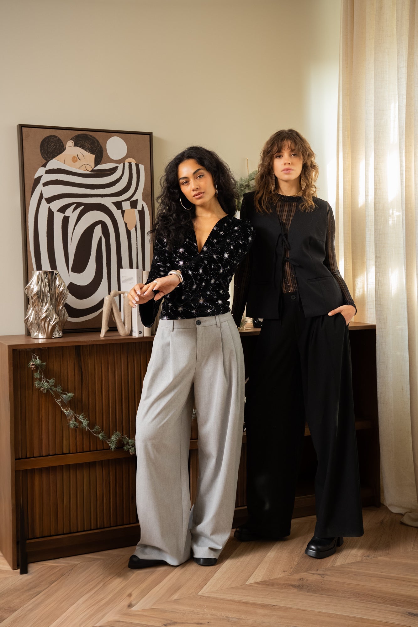 | Details | Lage V-Hals , Flared mouwen, Subtiele knoopsluiting in de nek |