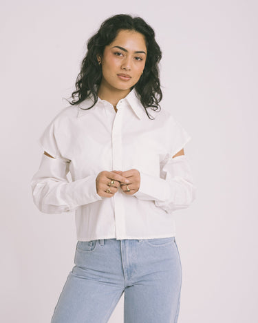 DetailsCut out bij de mouwen, Knoopsluiting, Semi cropped