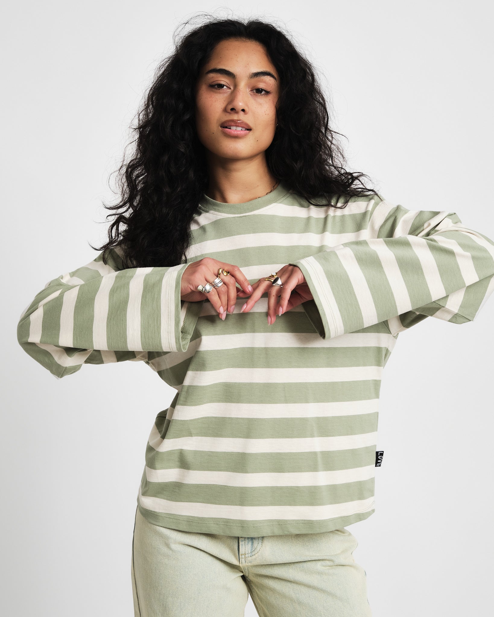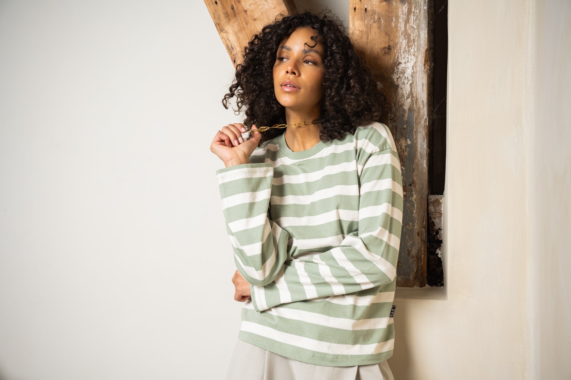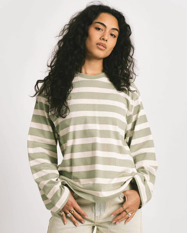 TILTIL Longsleeve Thick Striped Doka Tee Light Green