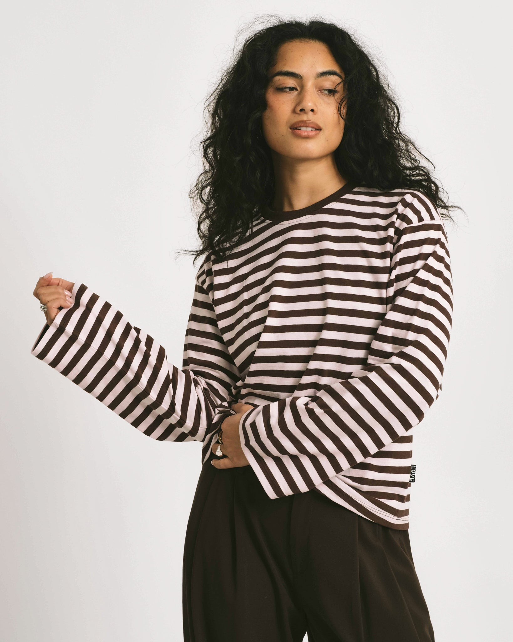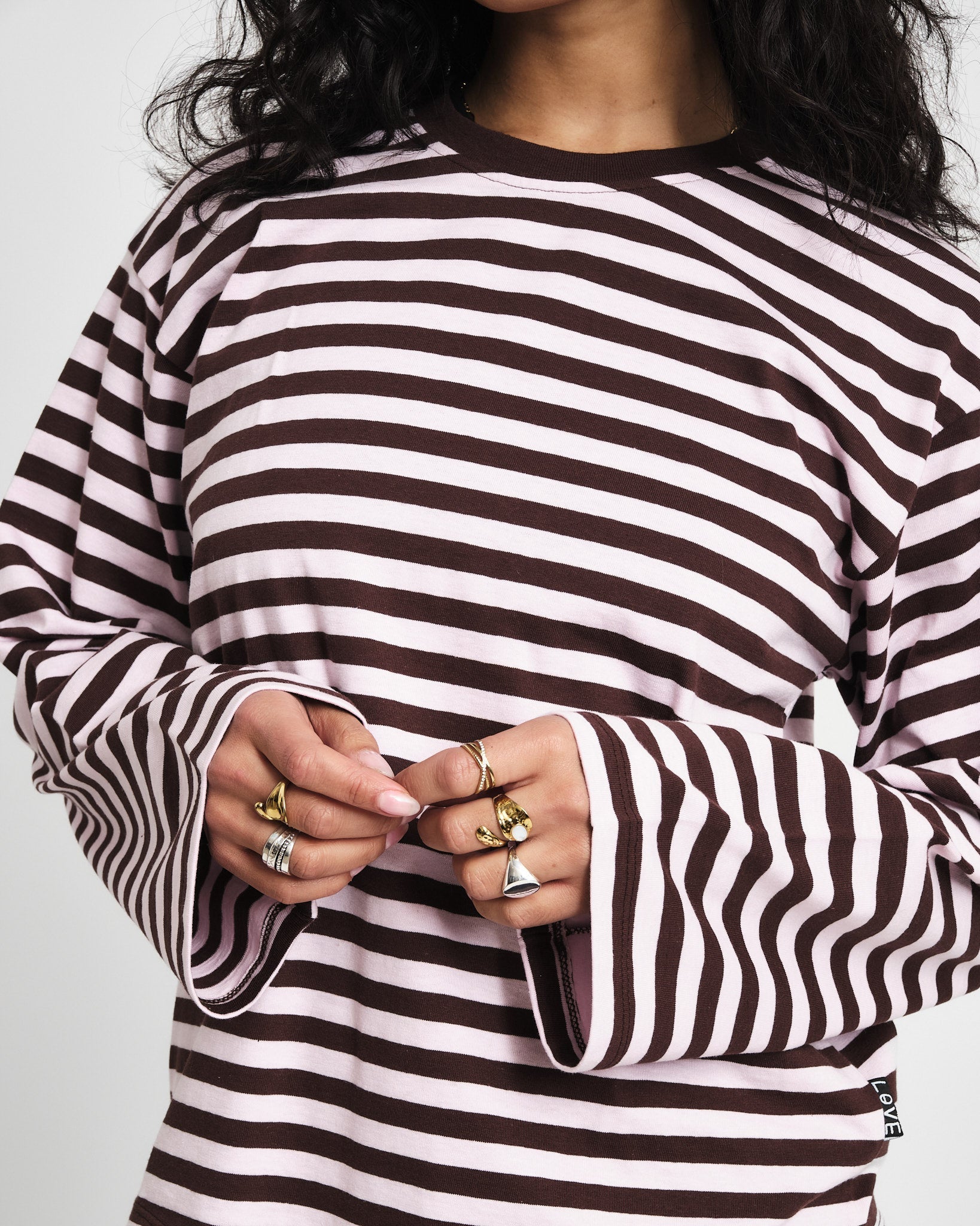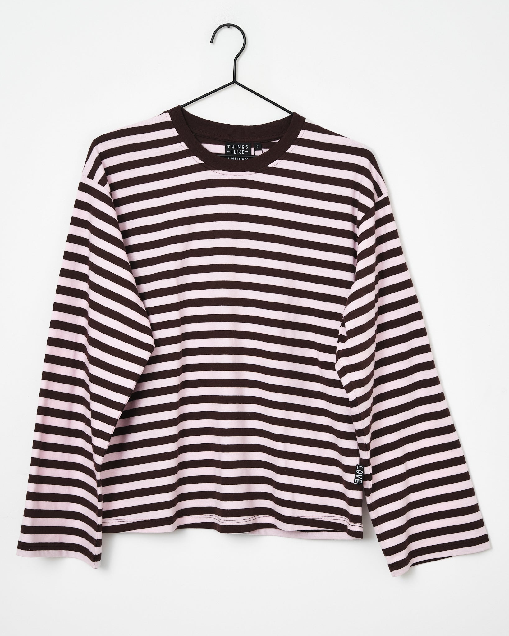 TILTIL Longsleeve Thin Striped Doka Tee Brown Pink