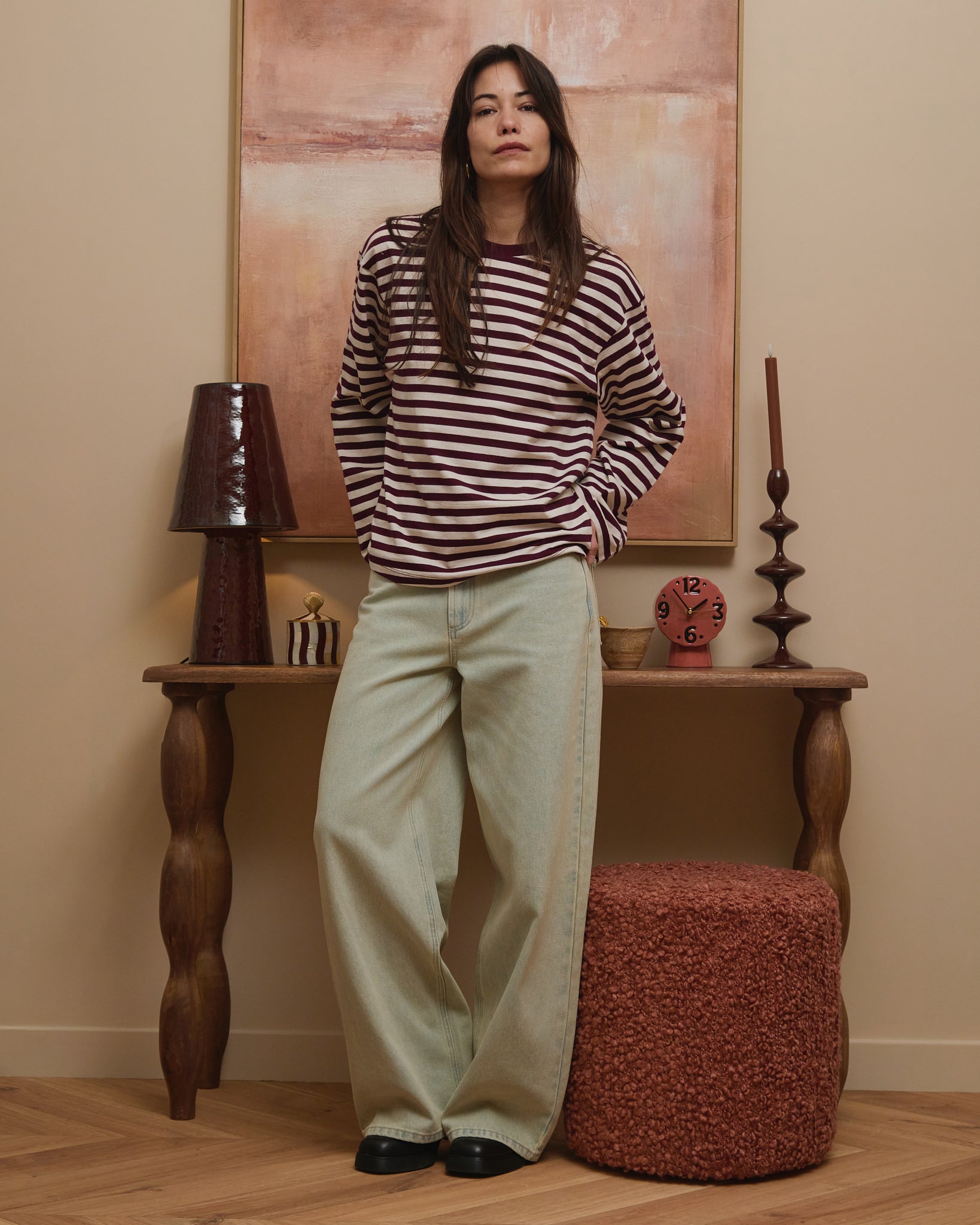 Deze Longsleeve Striped Tee is een relaxte essential met speelse strepen en een comfy oversized fit.