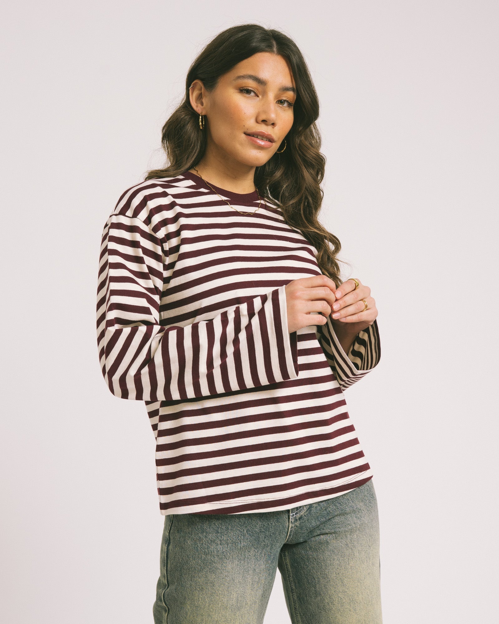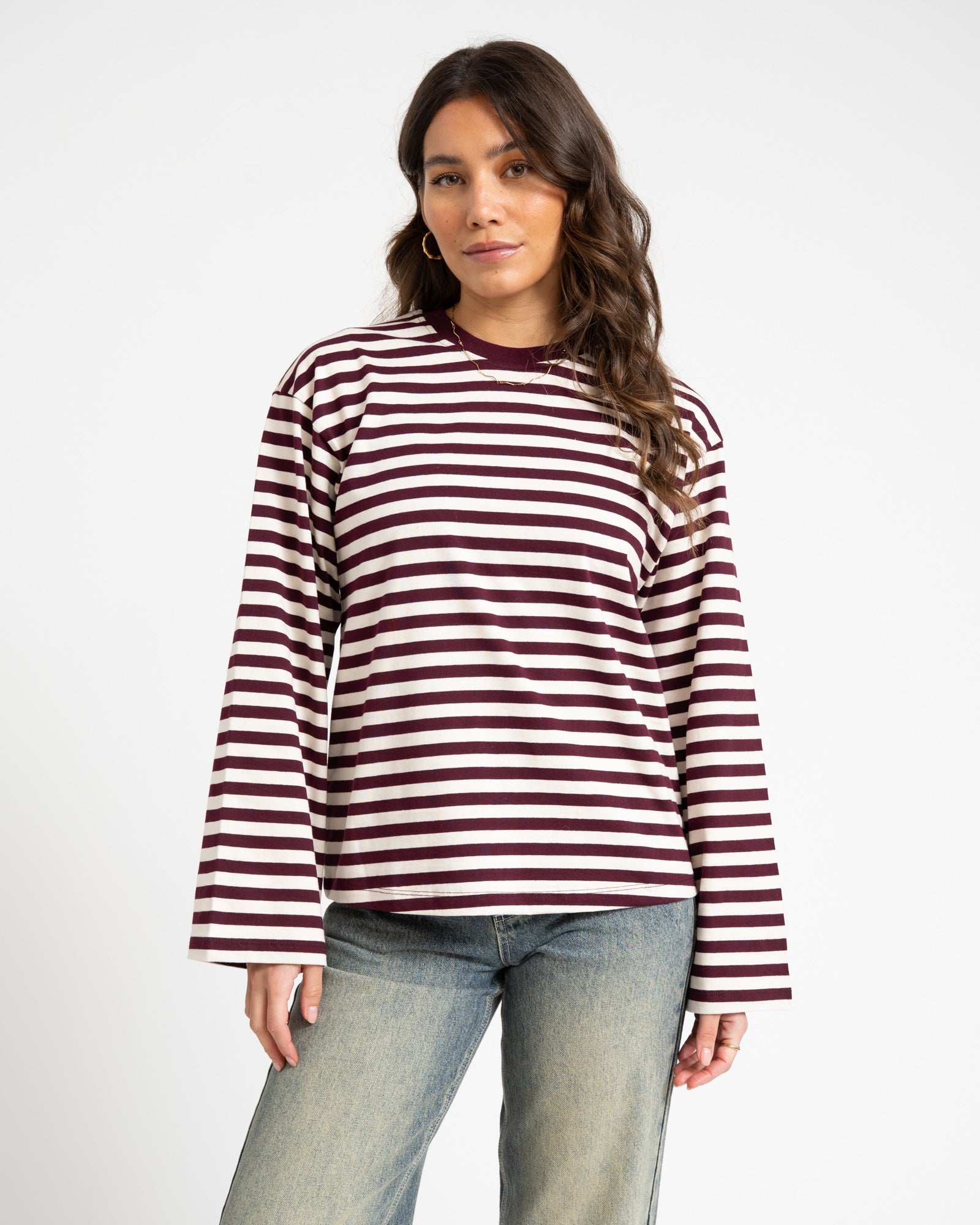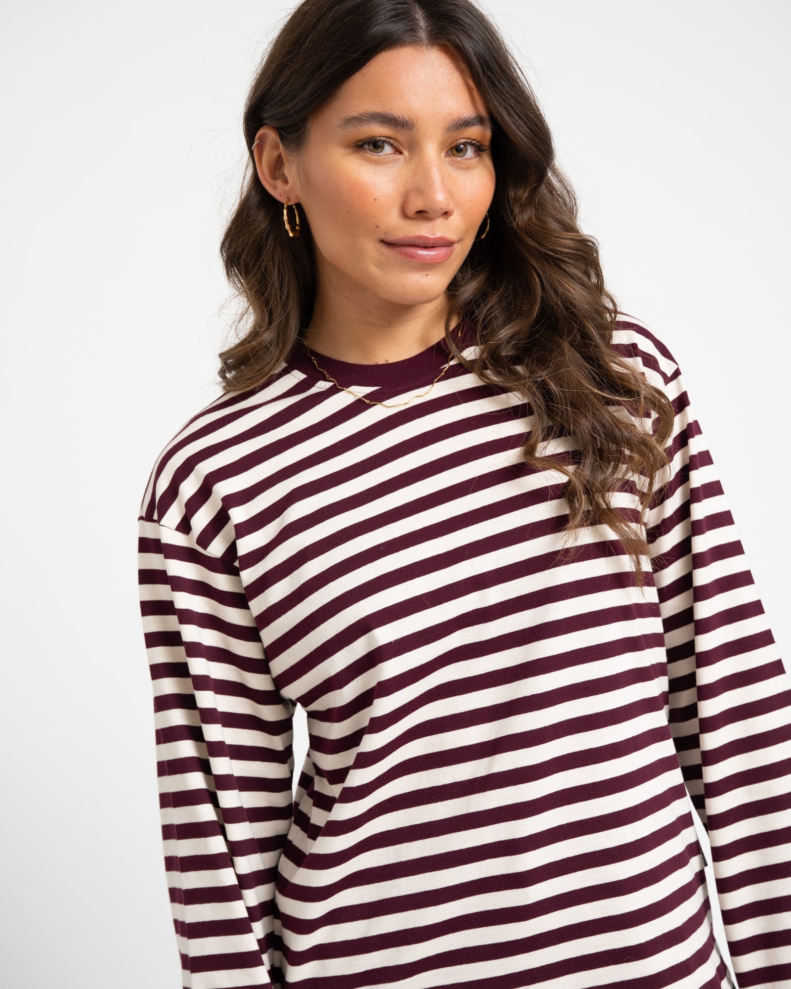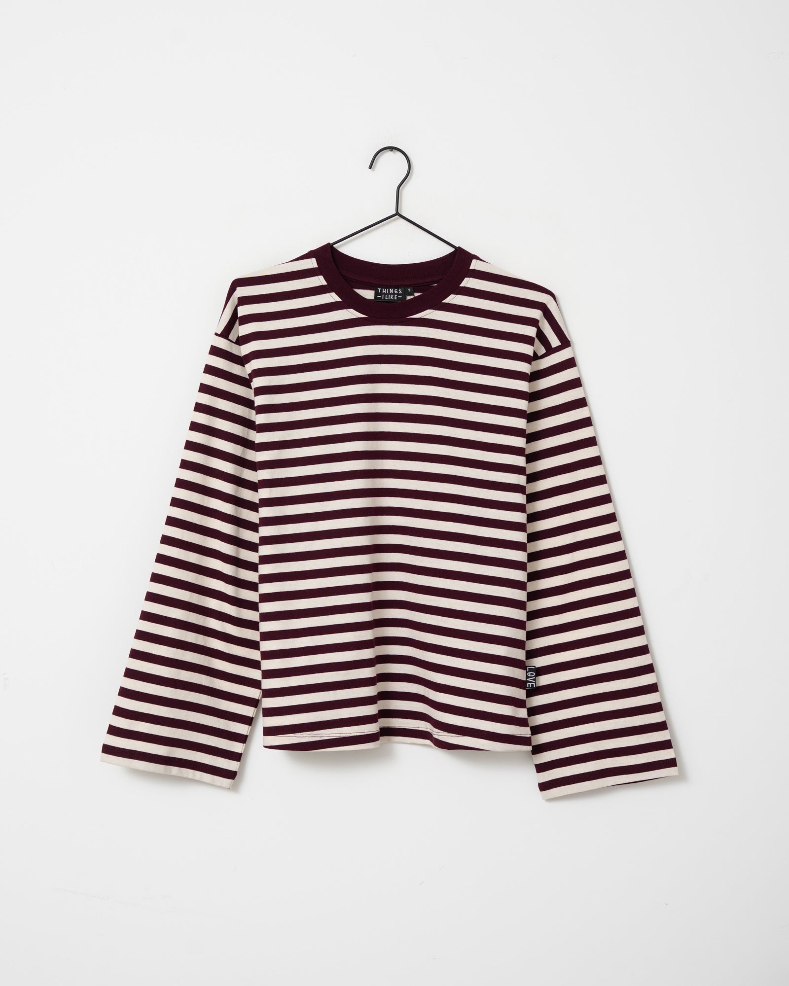 TILTIL Longsleeve Thin Striped Doka Tee Dark Burgundy