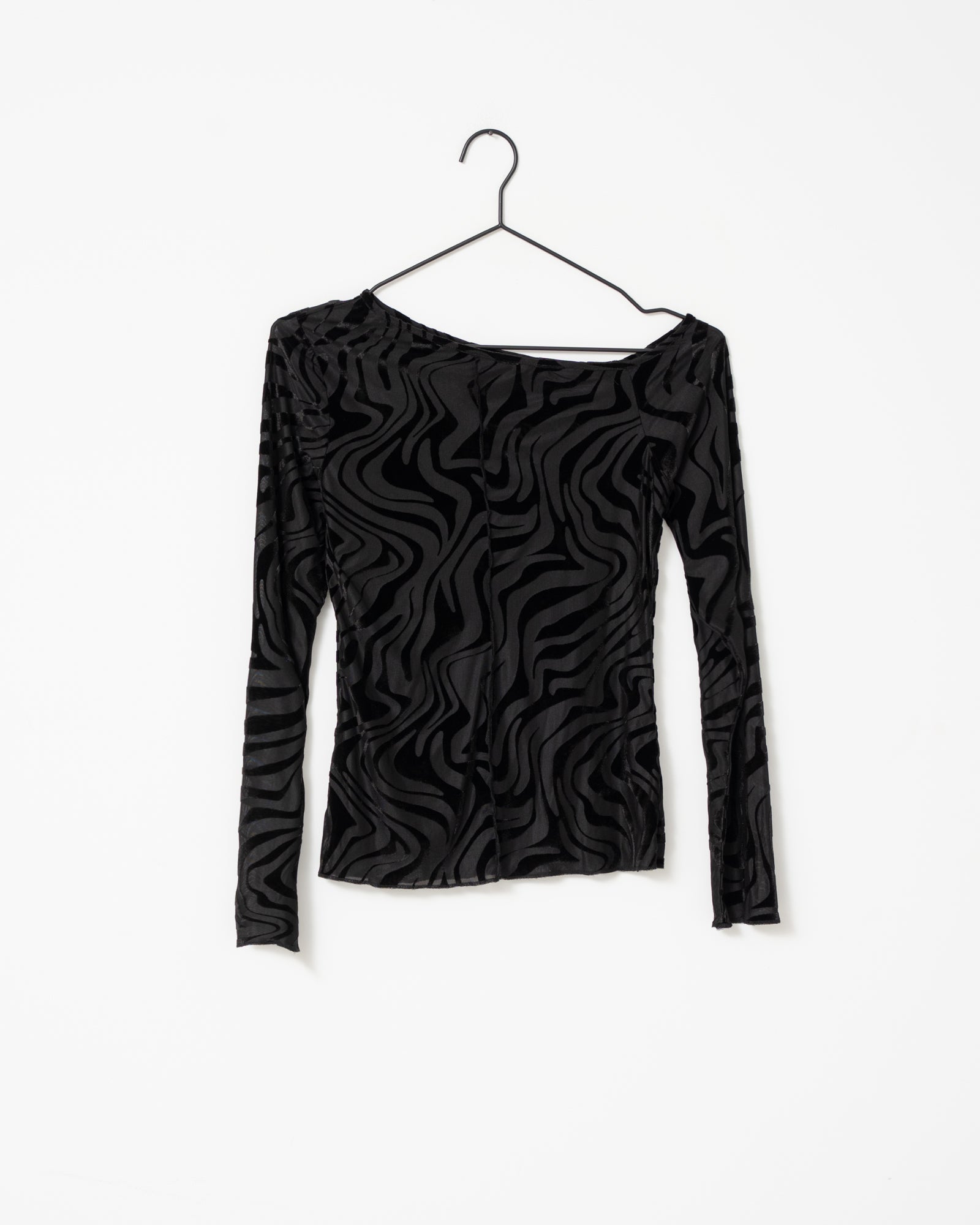 Deze zachte longsleeve heeft een zebra print, een speels naaddetail en valt nonchalant van één schouder. Stijlvol en comfortabel tegelijk.