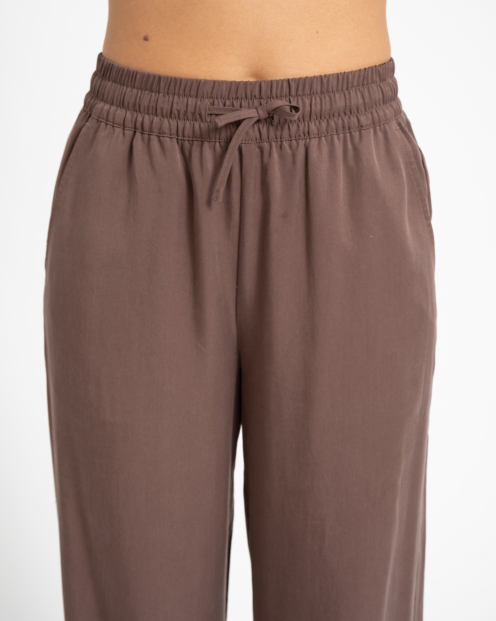 Luchtige broek in een warme bruine tint met een relaxte fit. De elastische tailleband en soepelvallende stof zorgen voor ultiem draagcomfort. Een stijlvolle basis voor elke outfit.