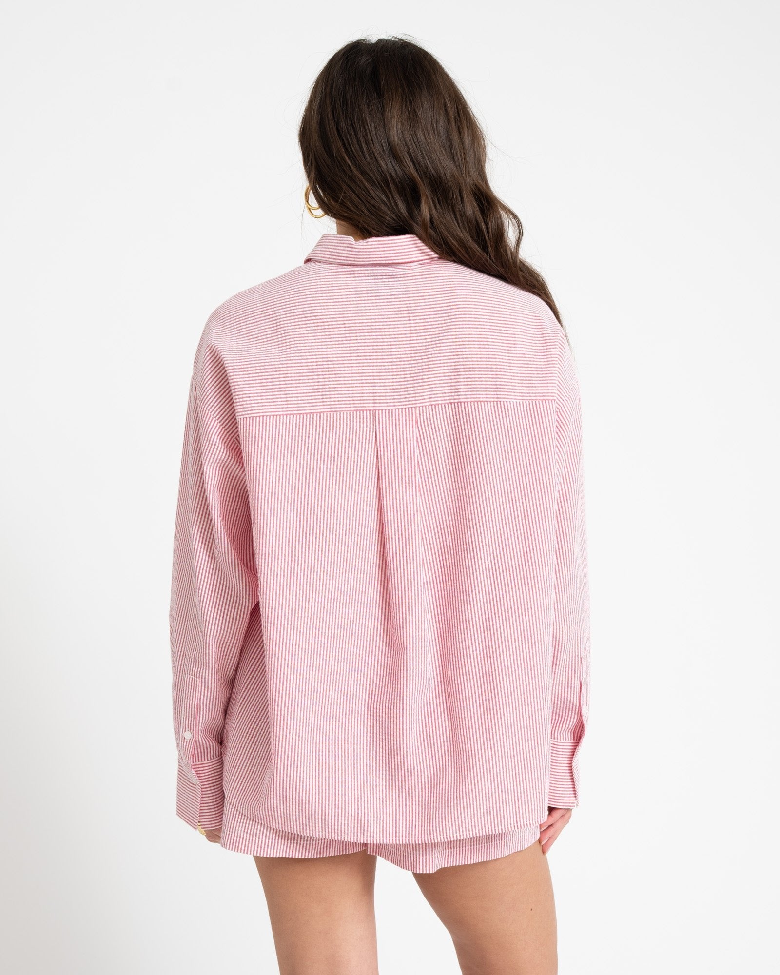 Rood-witte seersucker blouse met een luchtige, effortless feel. ❤️