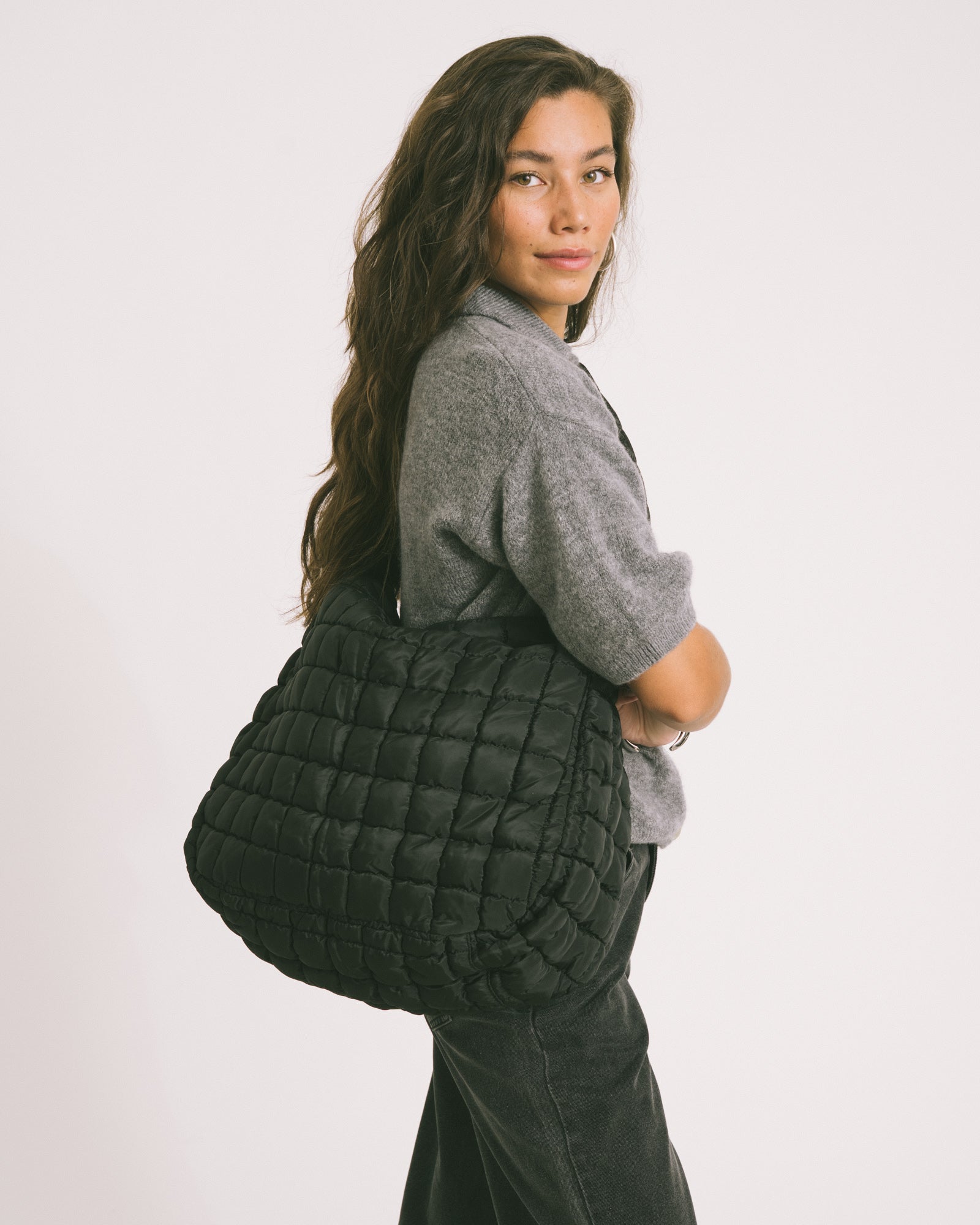 Extra ruim, superzacht en met een trendy quilted look. Voorzien van een handig binnenvakje met rits en te dragen over de schouder of crossbody.