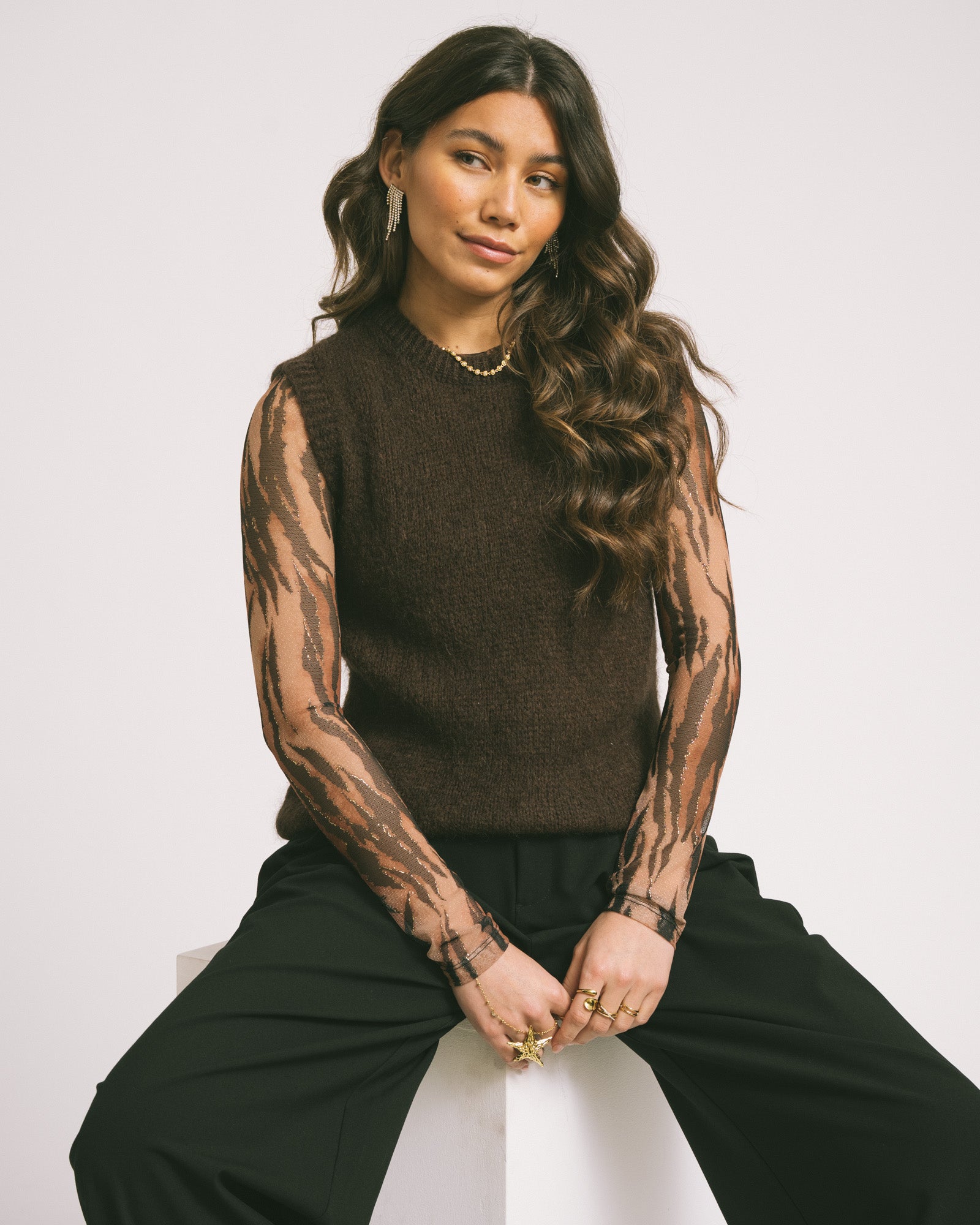 Een dun gebreide spencer om te combineren met al je long sleeves!