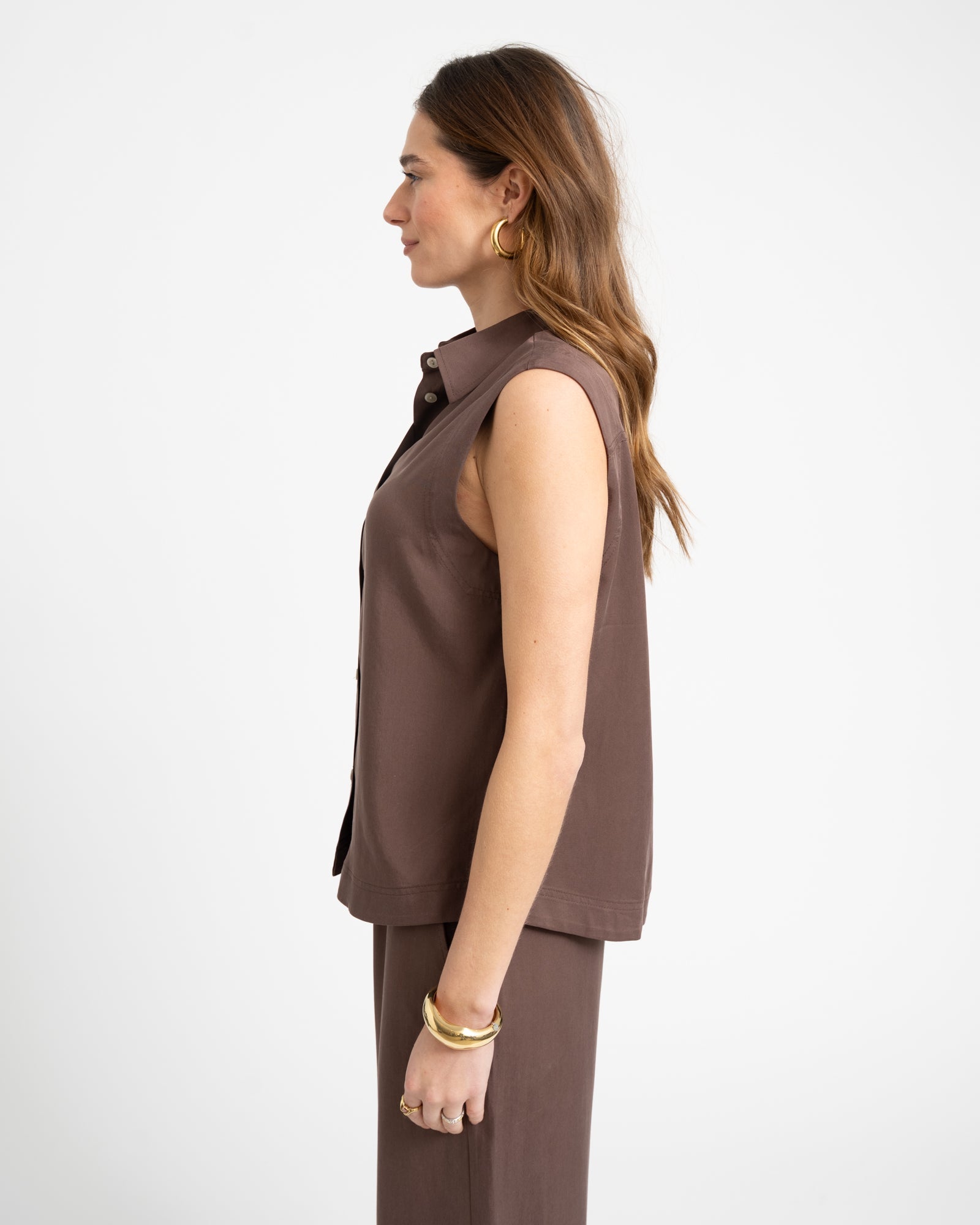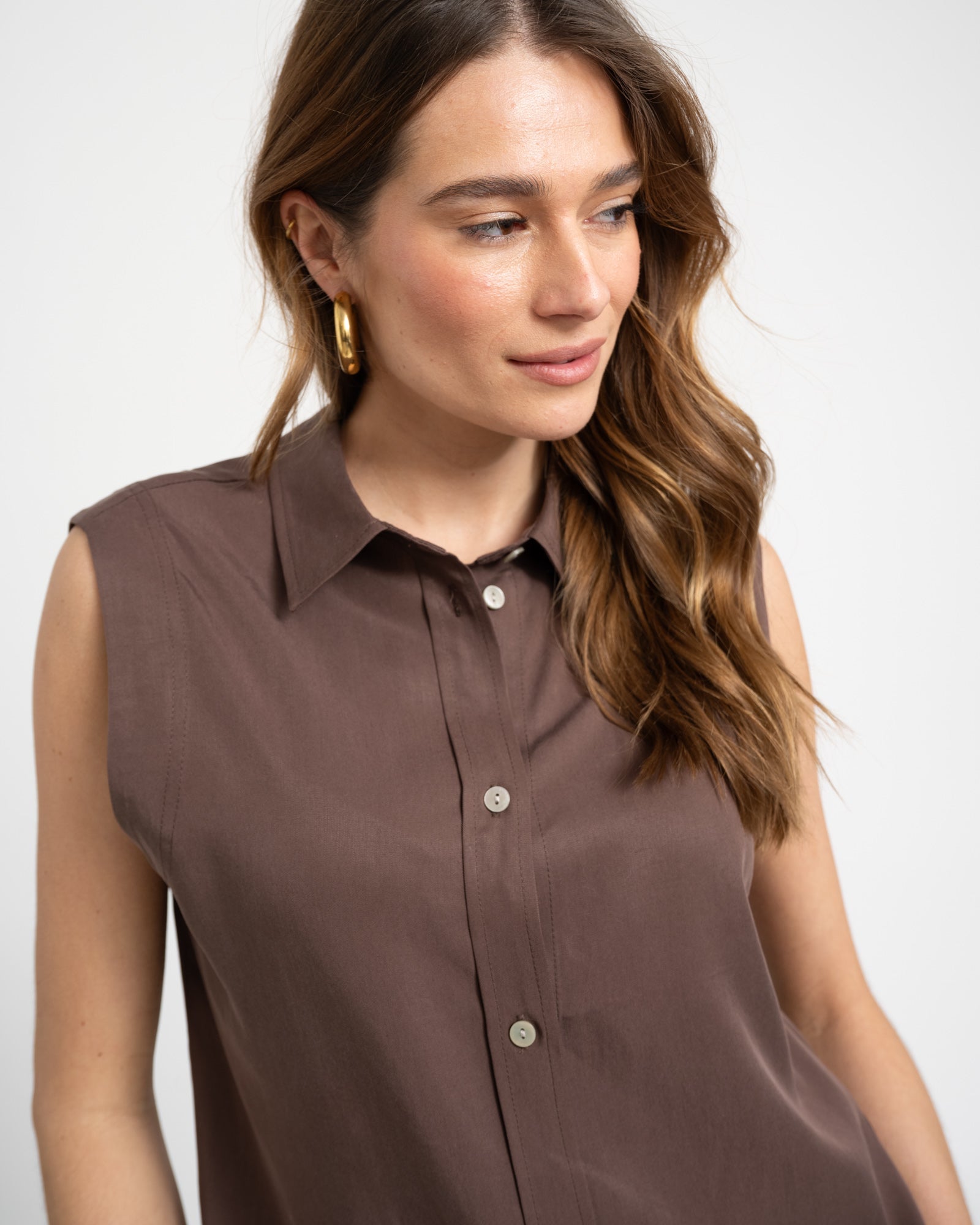 TILTIL Sleeveless Juna Tencel Blouse Brown