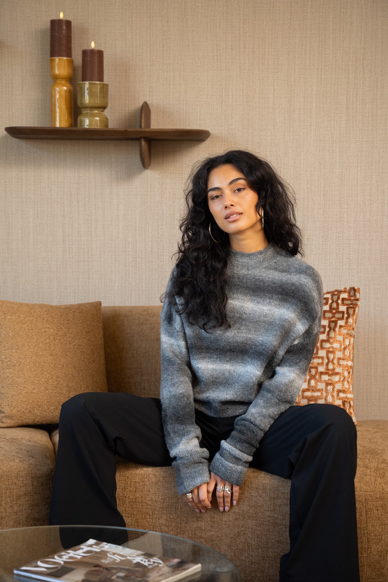 De TILTIL Striped Rumi Pullover is je ultieme comfy knit in een frisse grijze variant. De zachte wolmix houdt je warm en de speelse strepen geven je outfit meteen een vrolijke twist.