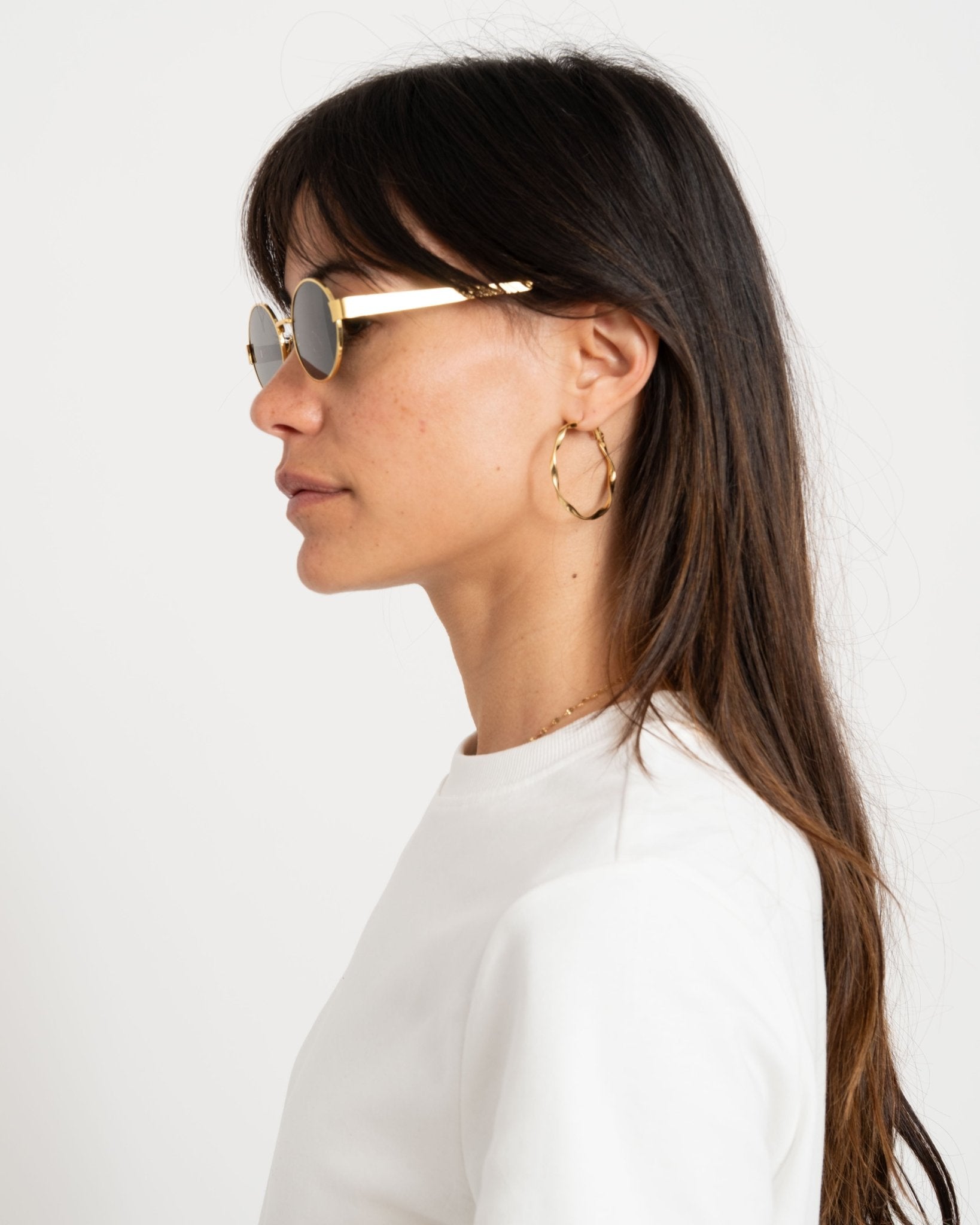 Deze TILTIL zonnebril met goudkleurig montuur en donkere glazen heeft een tijdloze en minimalistische uitstraling ✨ Perfect voor een stijlvolle, everyday look.