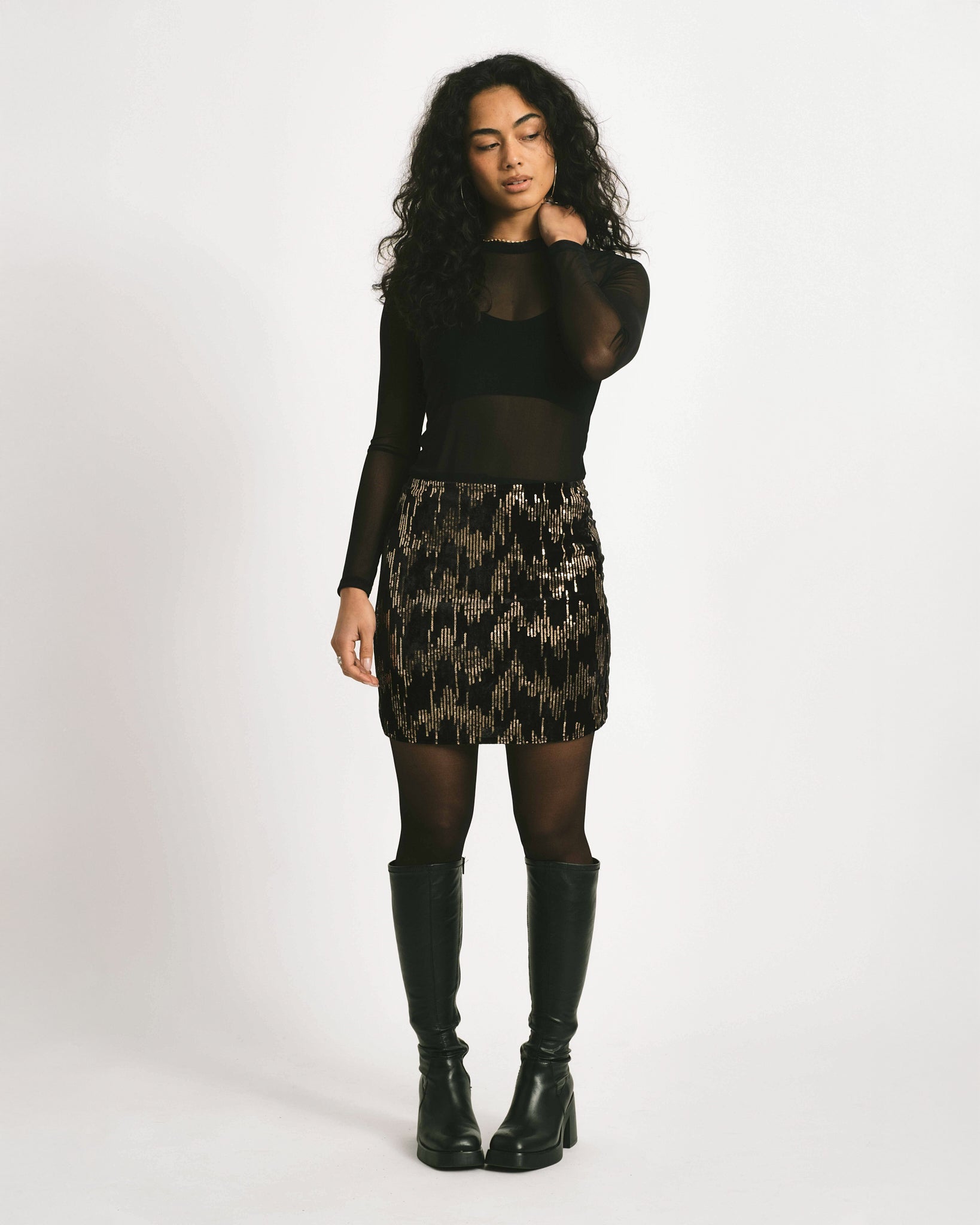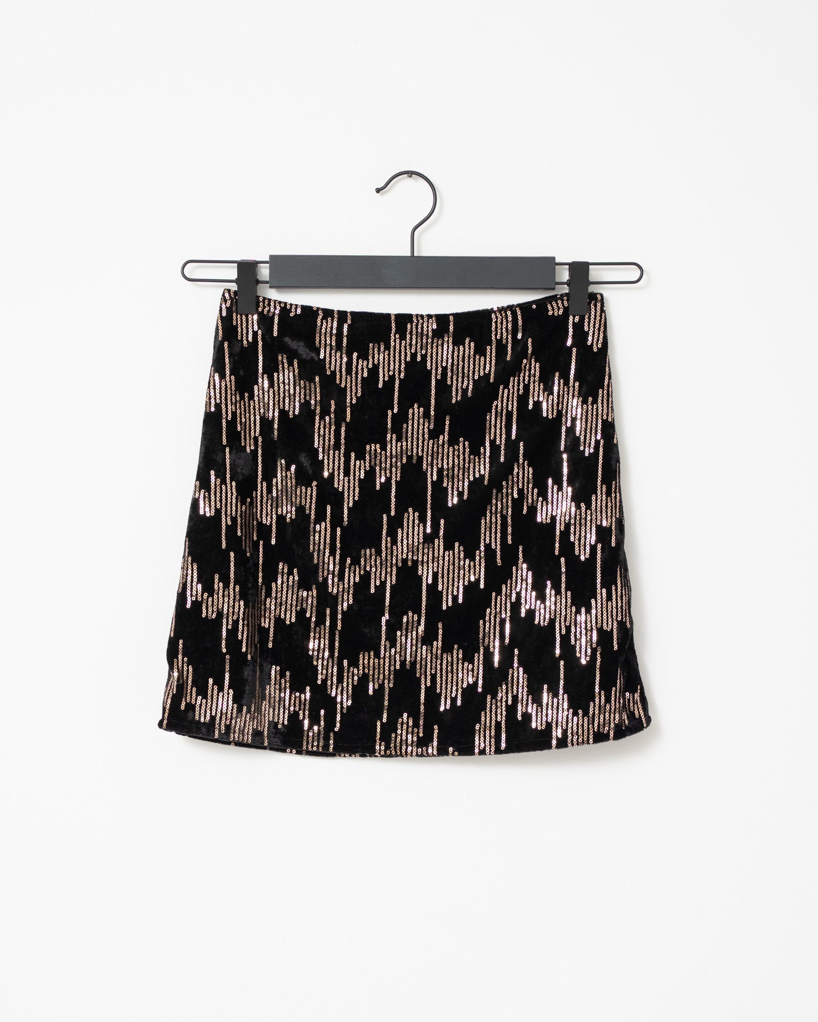 De perfecte party skirt! 🖤 Glanzende velvet stof met glitter print.