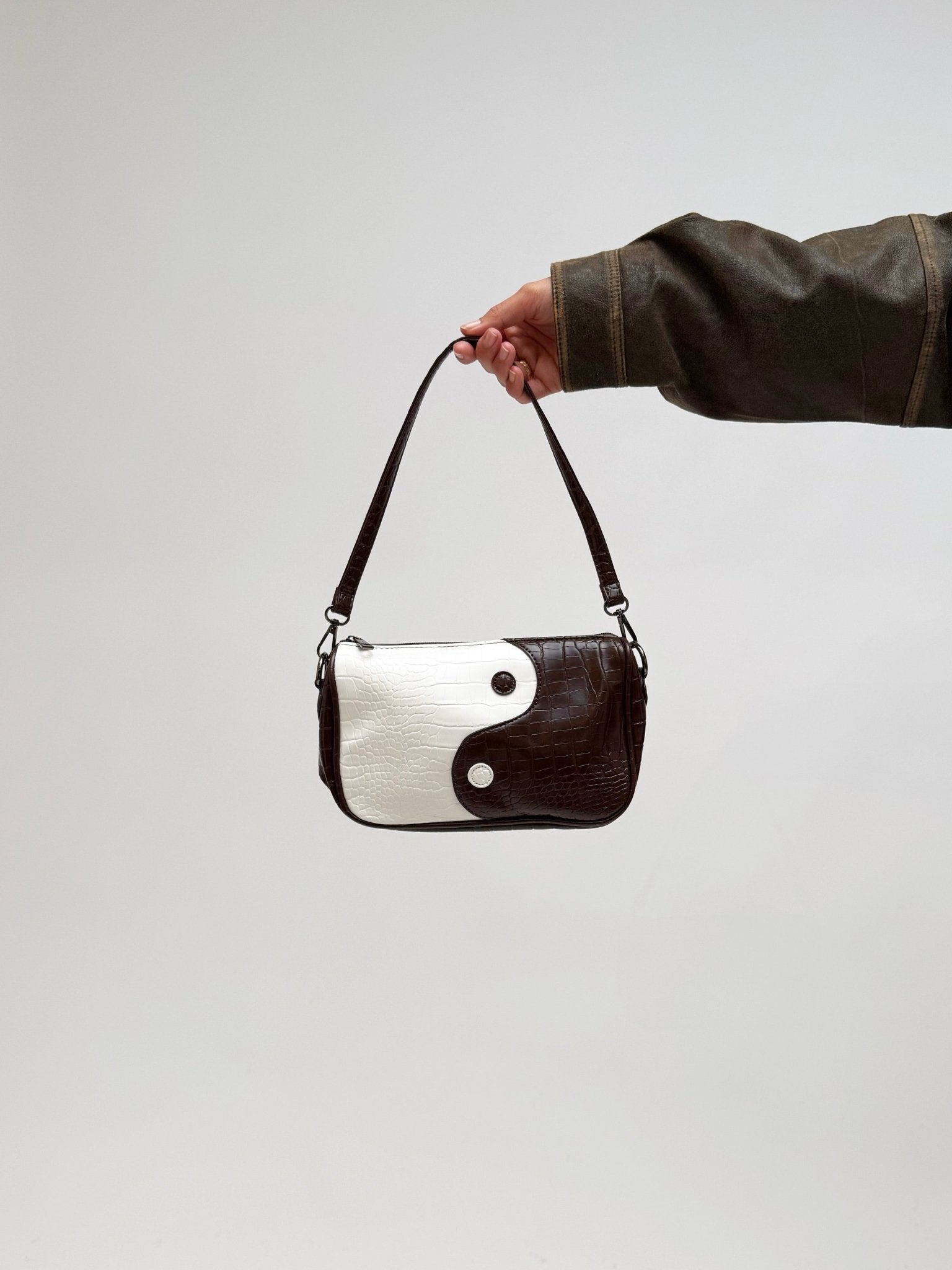 Met croco-effect, contrasterende bruin-wit look en compact formaat is. Perfect voor je night out essentials!