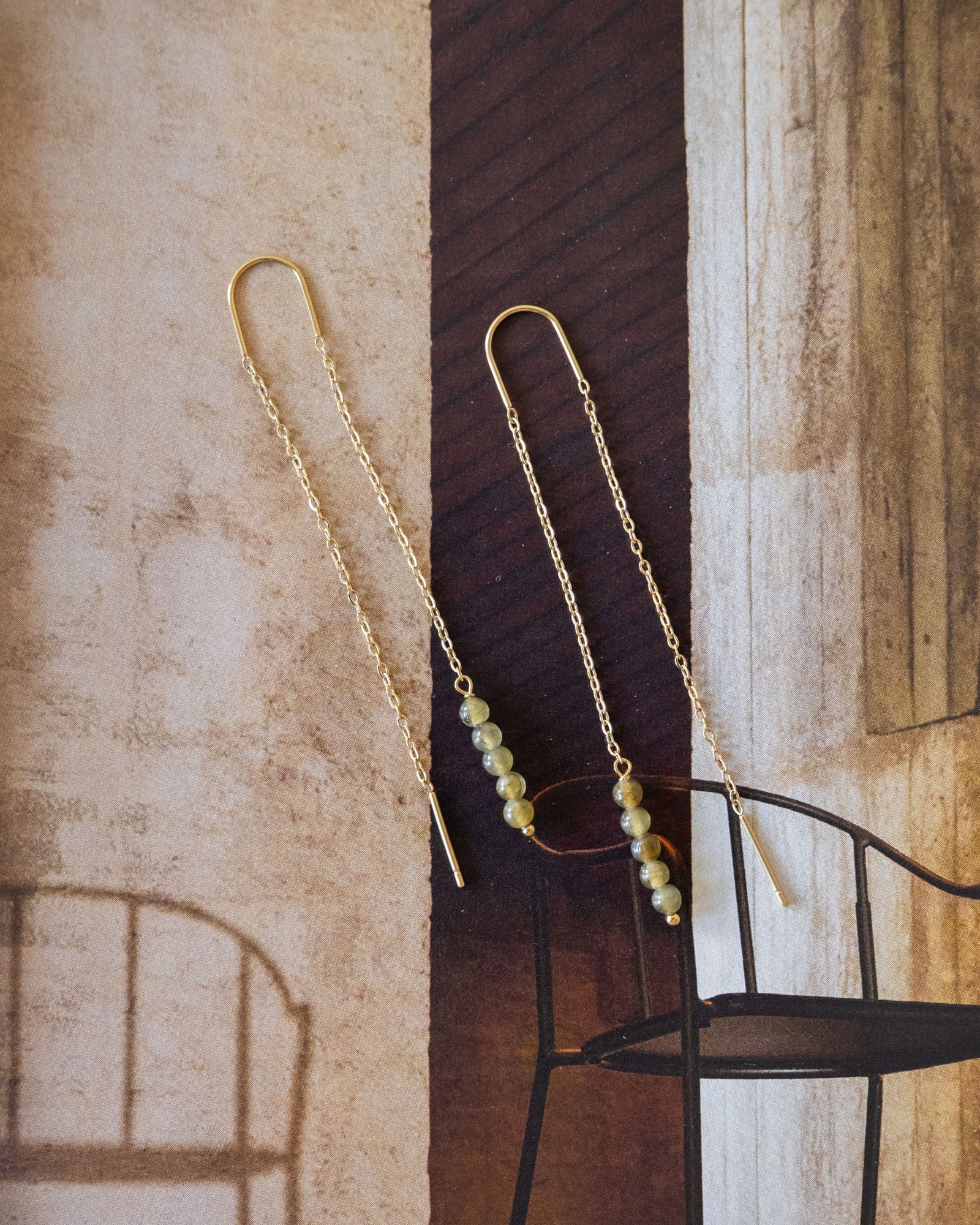 Toffe lange oorbel die je door je gaatje kunt steken! Beschikbaar in verschillende kleuren.