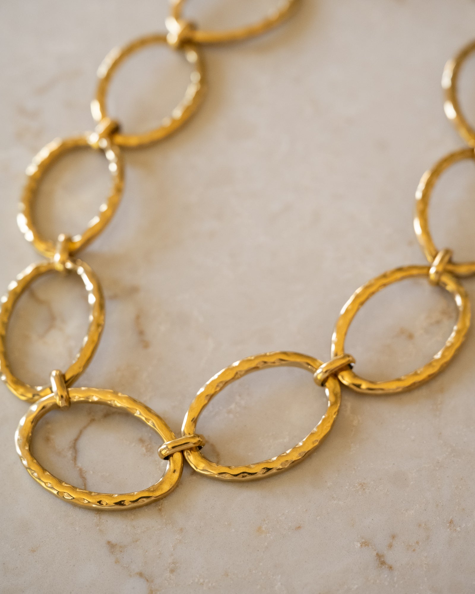 Grove ketting van gehamerde ovale schakels.