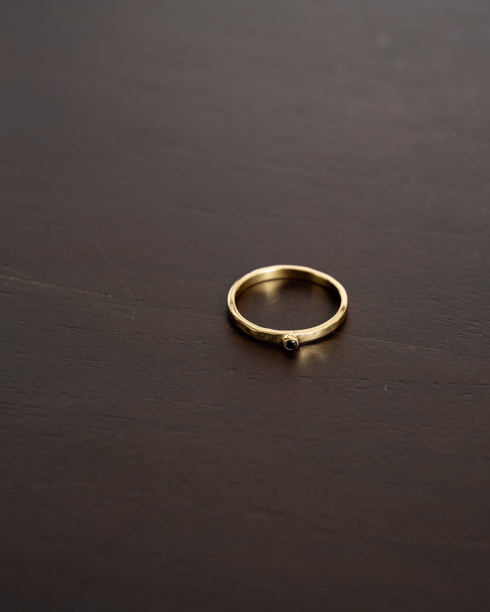 Subtiele gouden ring met een klein zwart steentje. Minimalistisch, elegant en perfect voor elke dag.